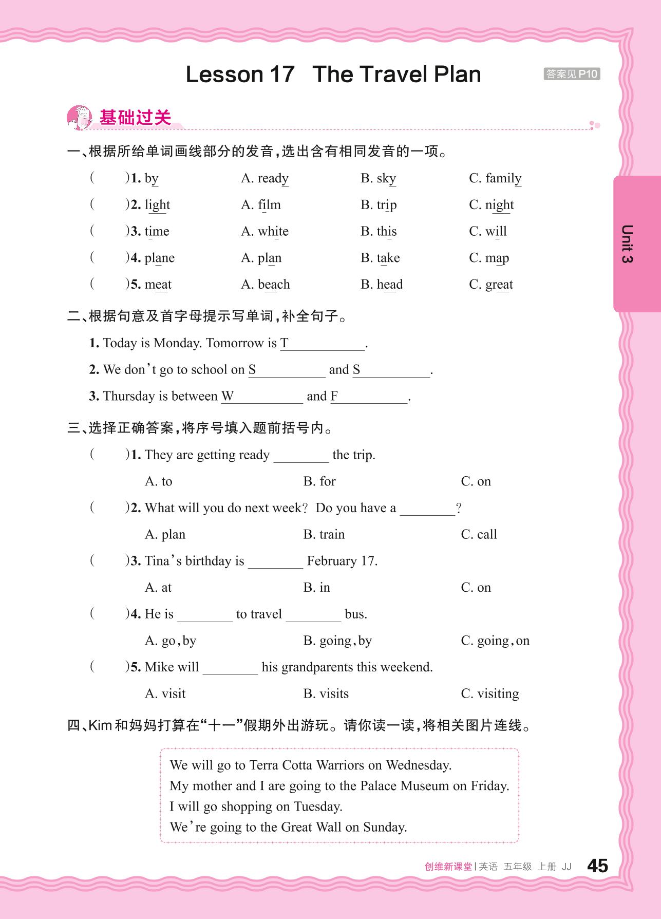 2024秋上册五年级英语冀教版 Unit 3—Lesson 17 The Travel Plan
