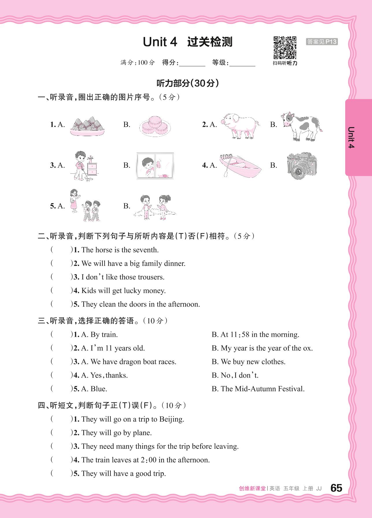 五年级英语冀教版上册单元卷