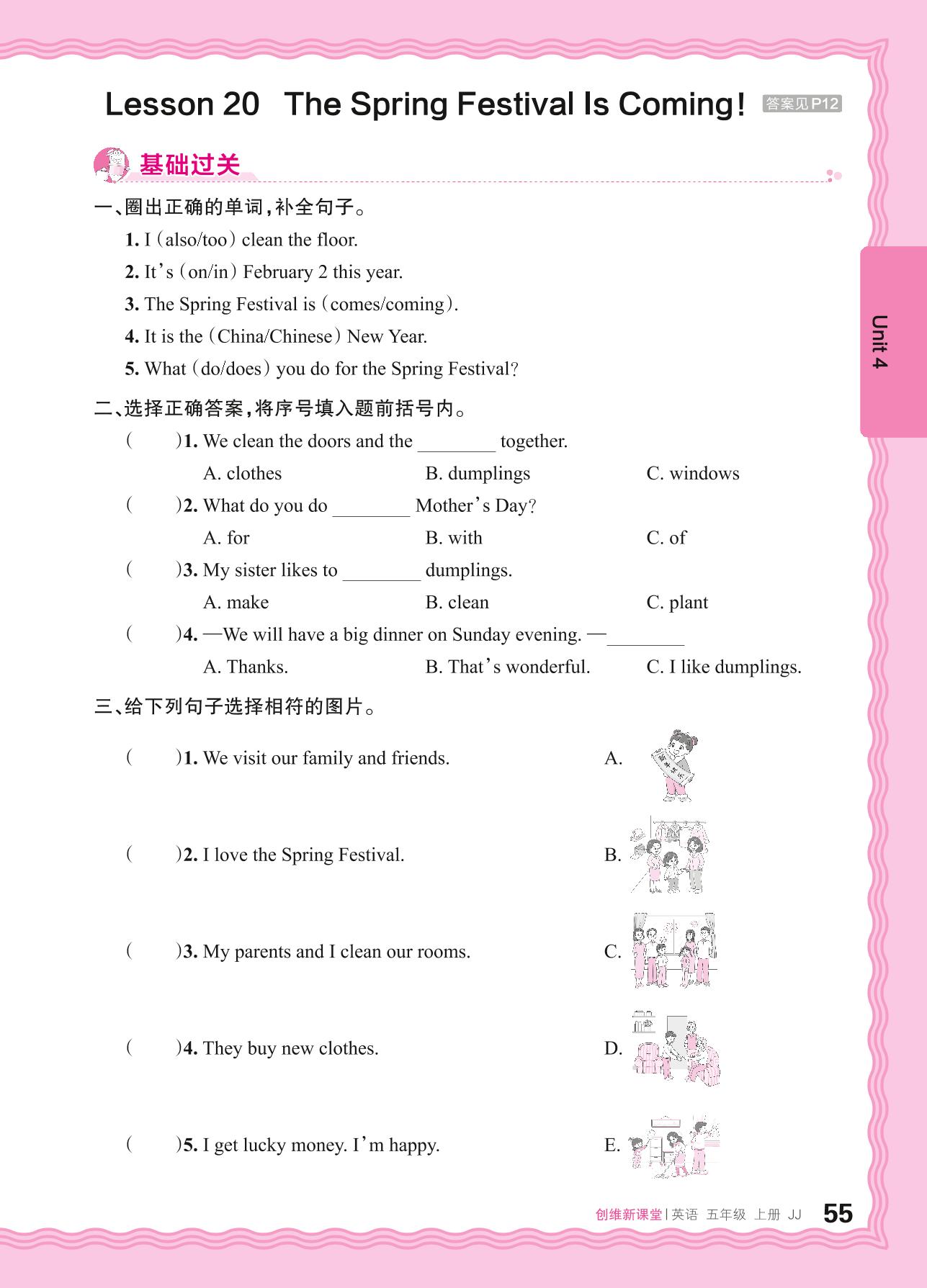 2024秋上册五年级英语冀教版 Unit 4—Lesson 20 The Spring Festival Is Coming!