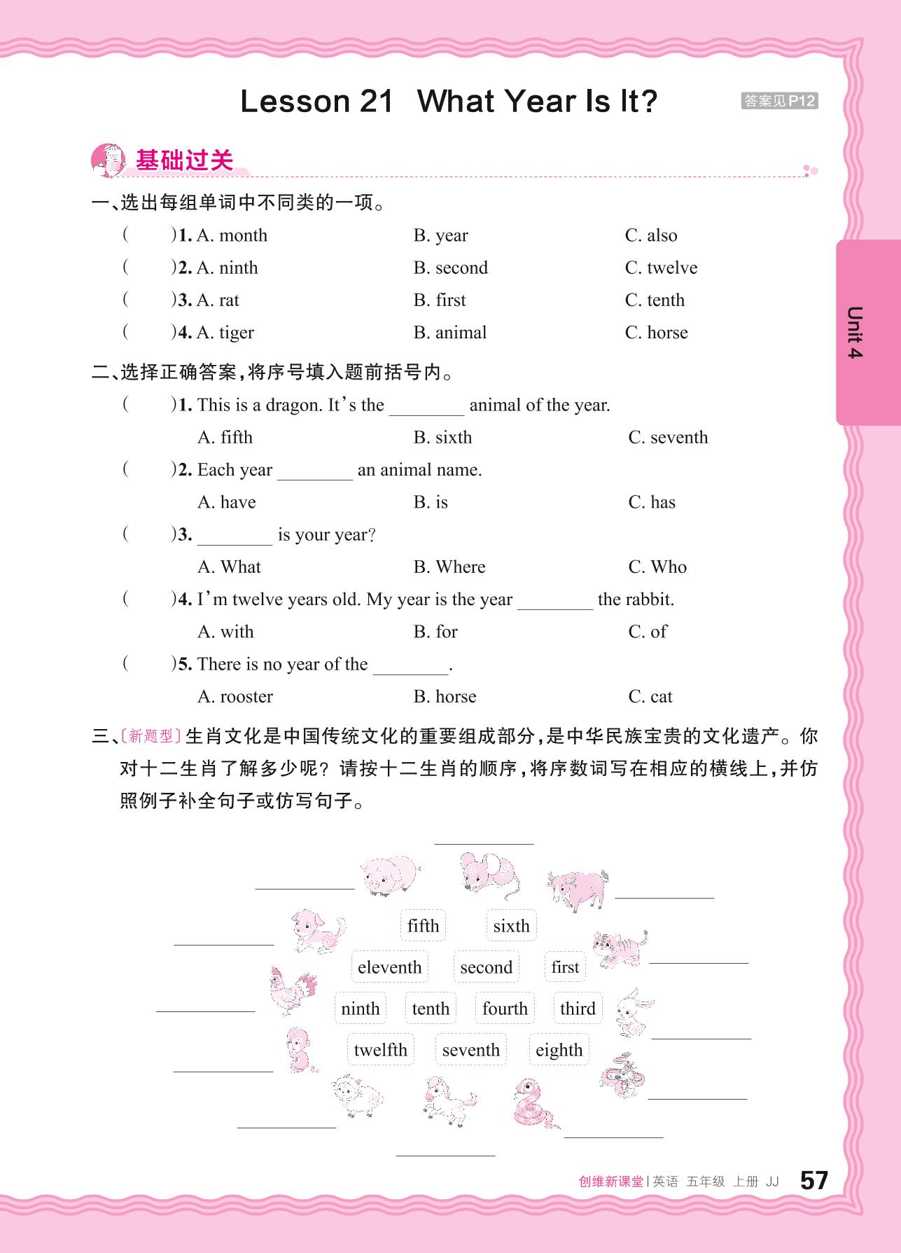2024秋上册五年级英语冀教版 Unit 4—Lesson 21 What Year Is It?