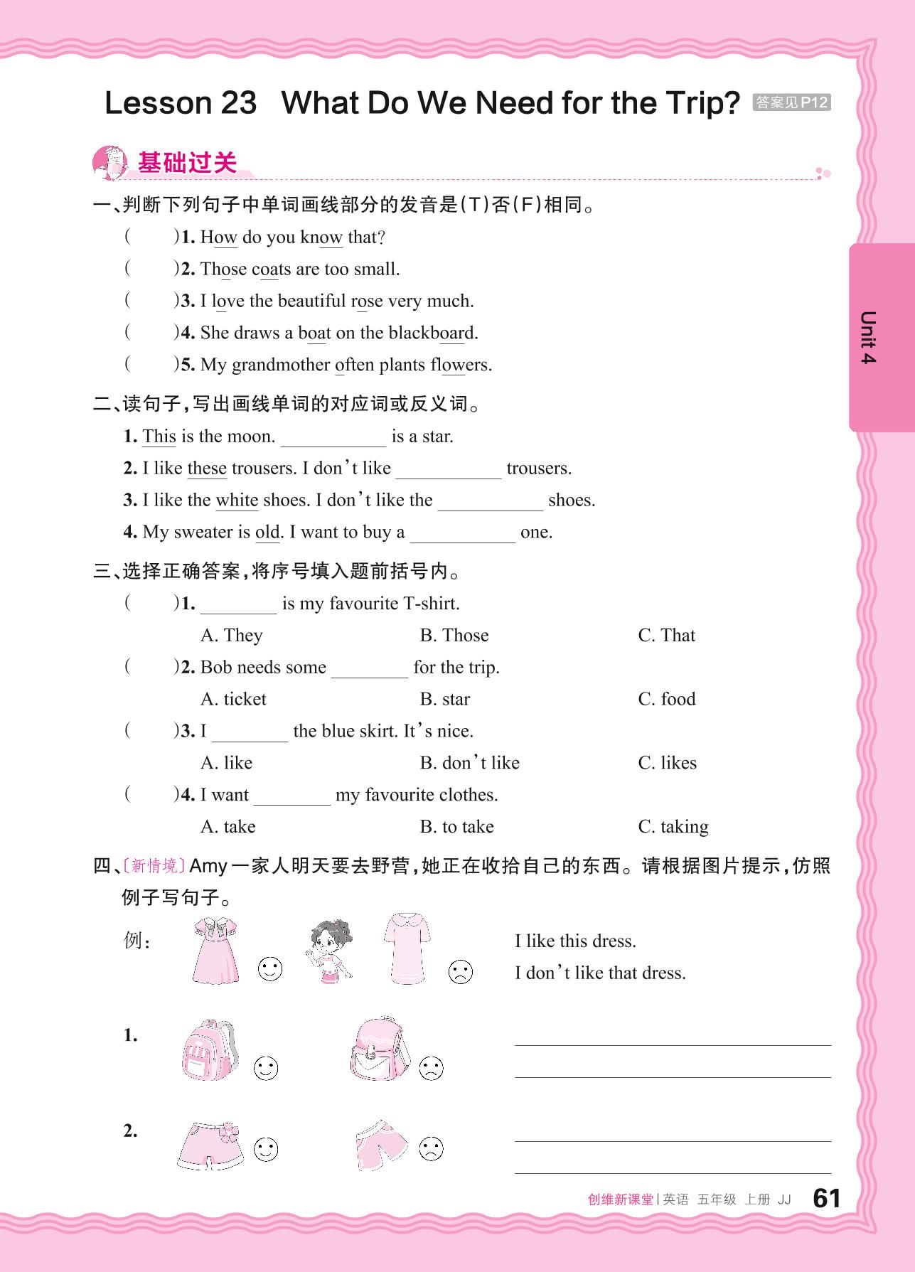 2024秋上册五年级英语冀教版 Unit 4—Lesson 23 What Do We Need for the Trip?