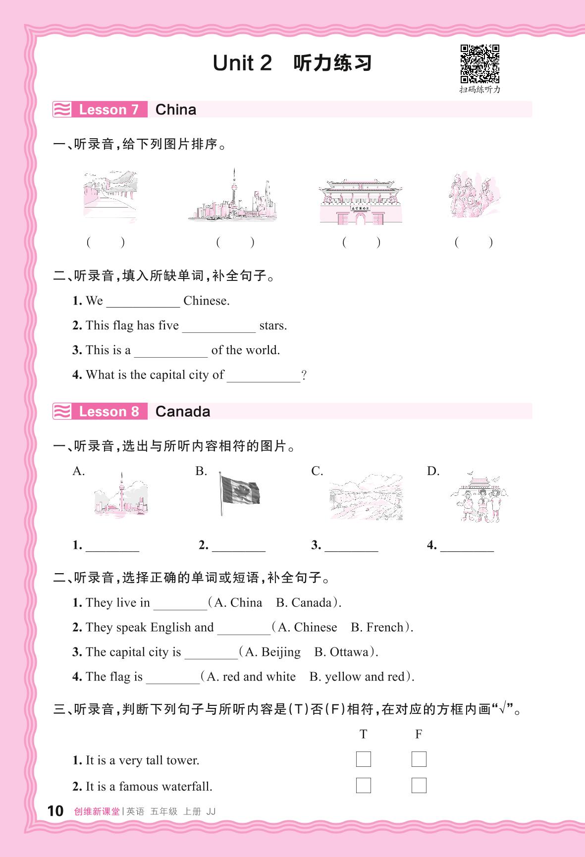 2024秋上册五年级英语冀教版 Unit 2 听力练习