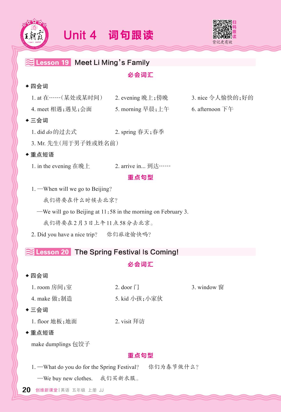 2024秋上册五年级英语冀教版 Unit 4 词句跟读