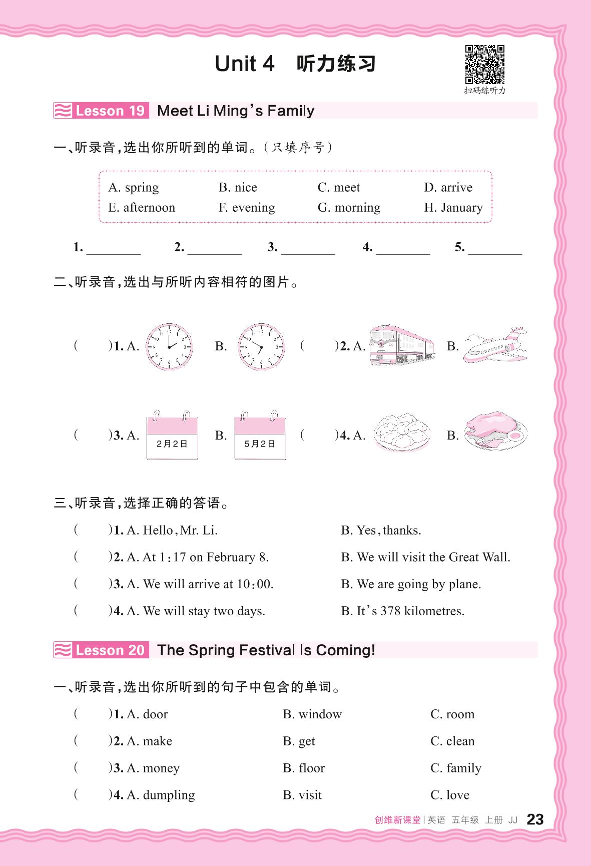 2024秋上册五年级英语冀教版 Unit 4 听力练习