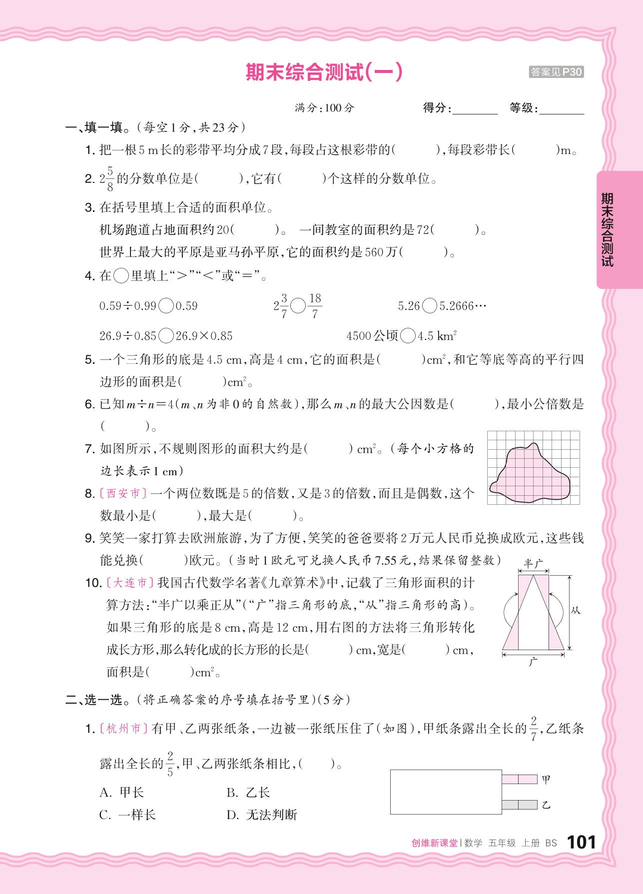 五年级数学北师版上册期末卷