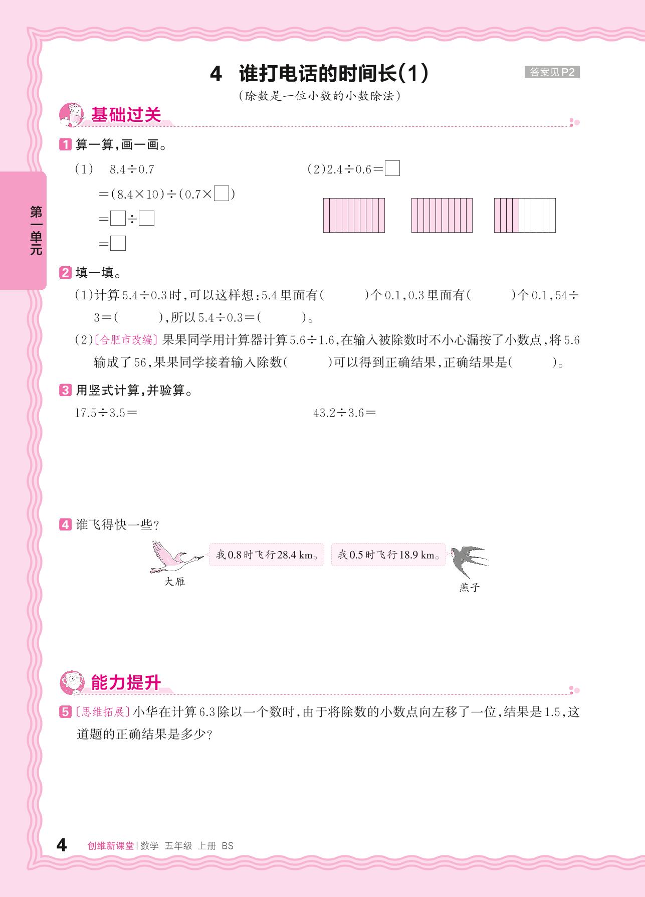 2024秋上册五年级数学北师版 第一单元 小数除法——4. 谁打电话的时间长(1)