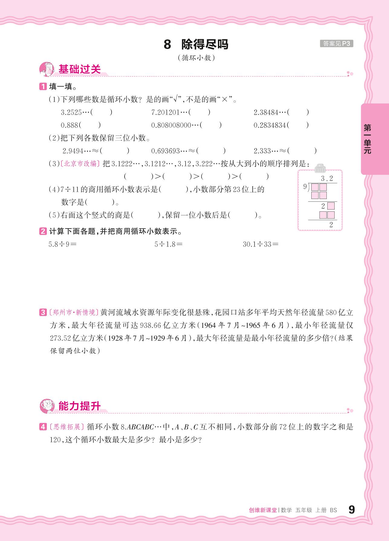 2024秋上册五年级数学北师版 第一单元 小数除法——8. 除得尽吗