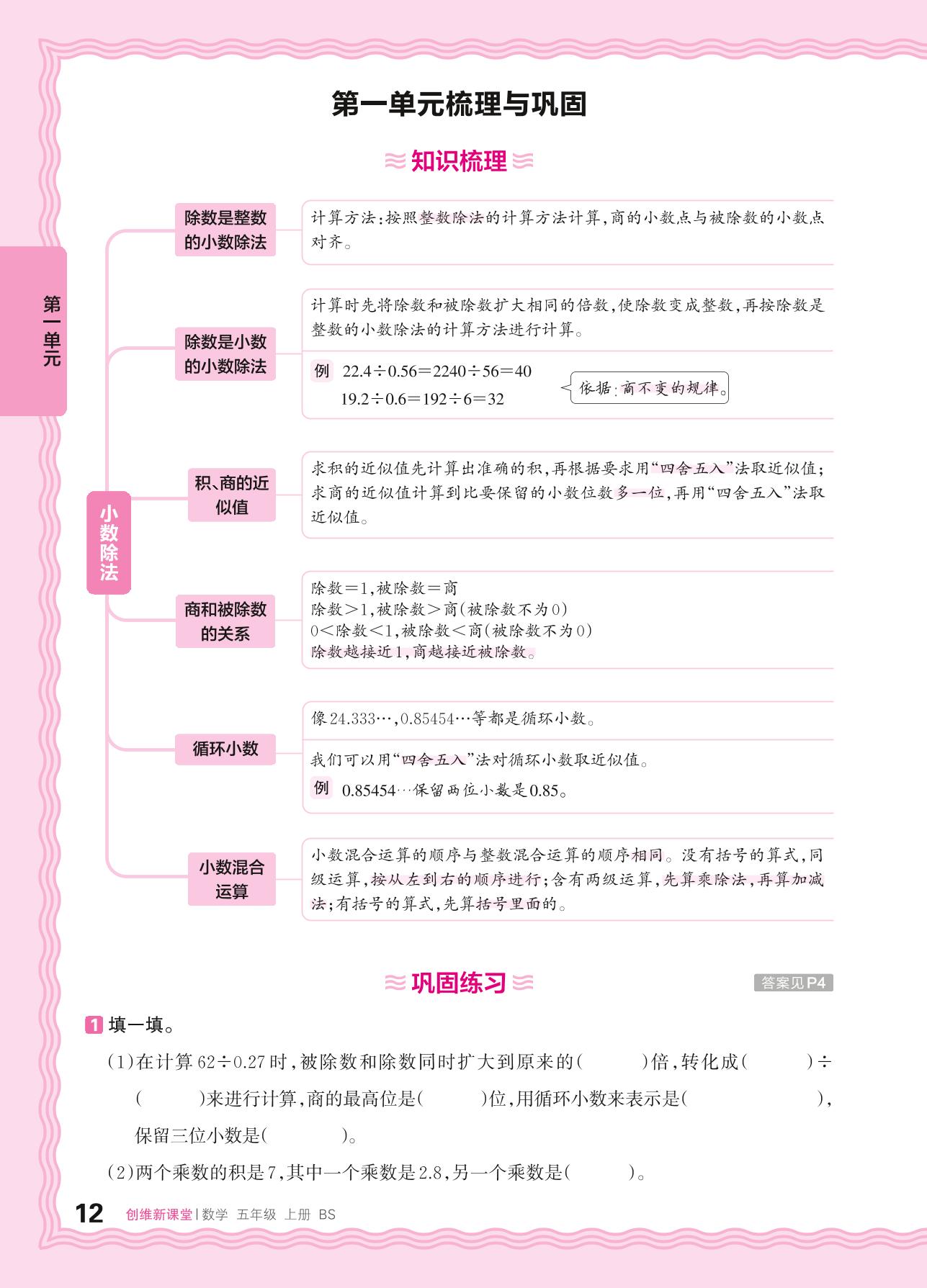 2024秋上册五年级数学北师版 第一单元梳理与巩固
