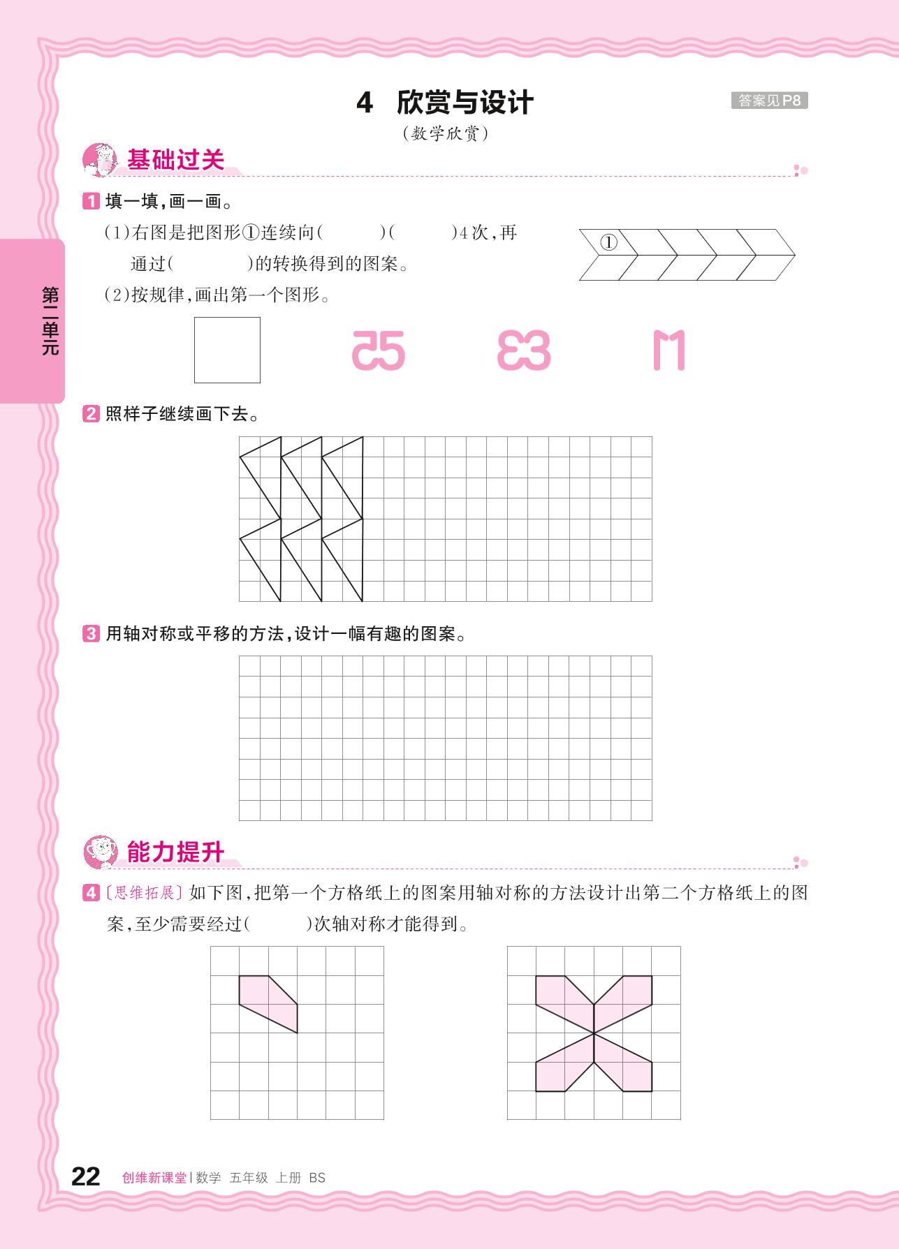 2024秋上册五年级数学北师版 第二单元 轴对称和平移——4. 欣赏与设计