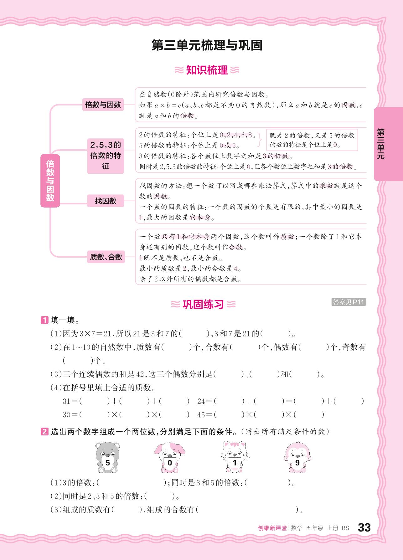 2024秋上册五年级数学北师版 第三单元梳理与巩固