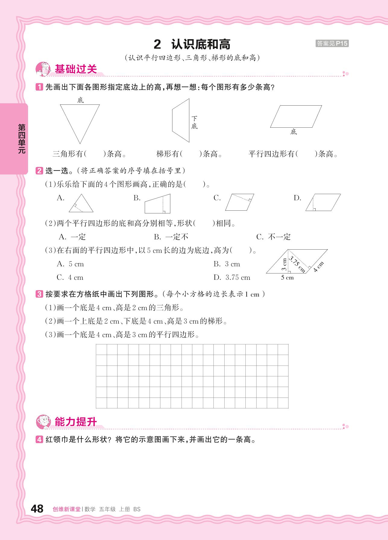 2024秋上册五年级数学北师版 第四单元 多边形的面积——2. 认识底和高