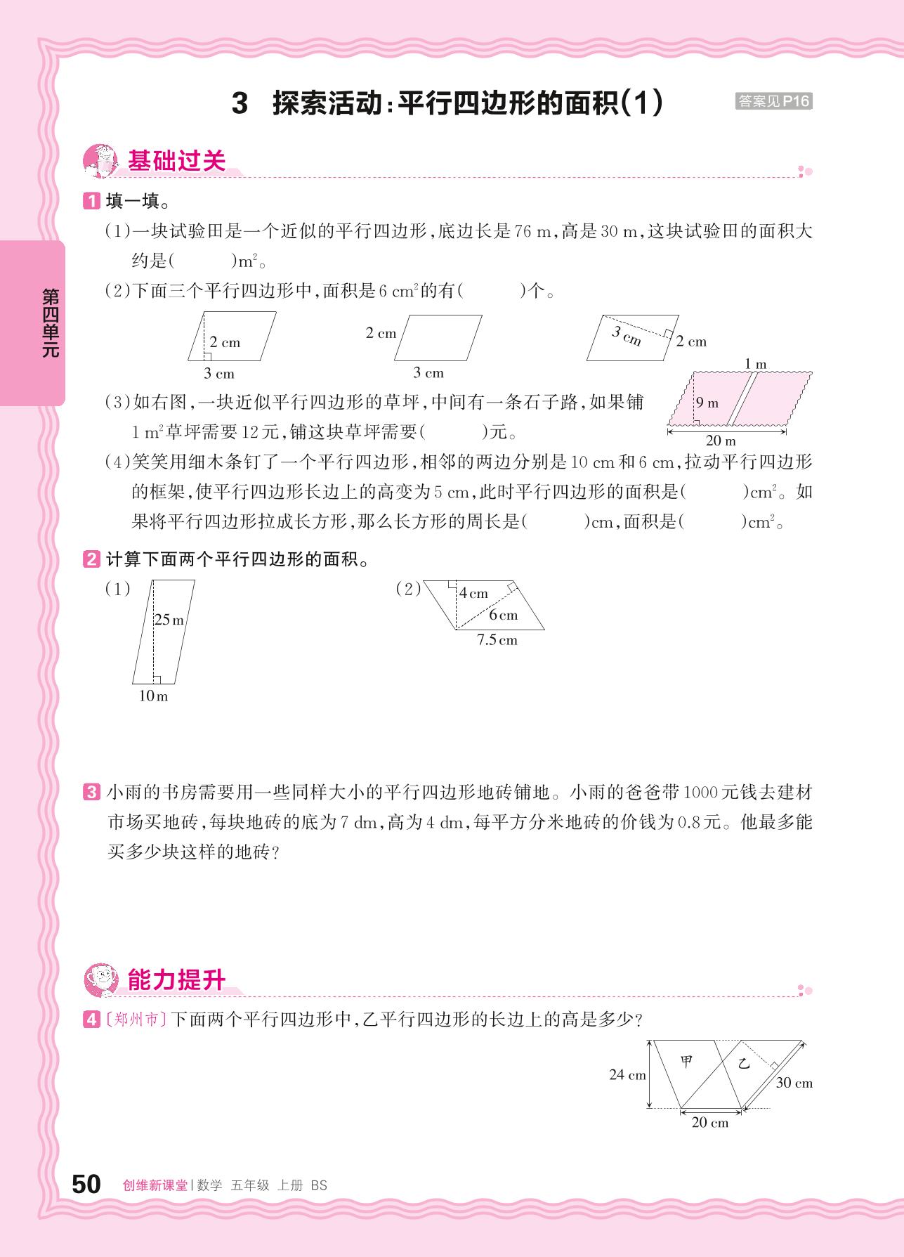 2024秋上册五年级数学北师版 第四单元 多边形的面积——3. 探索活动:平行四边形的面积(1)