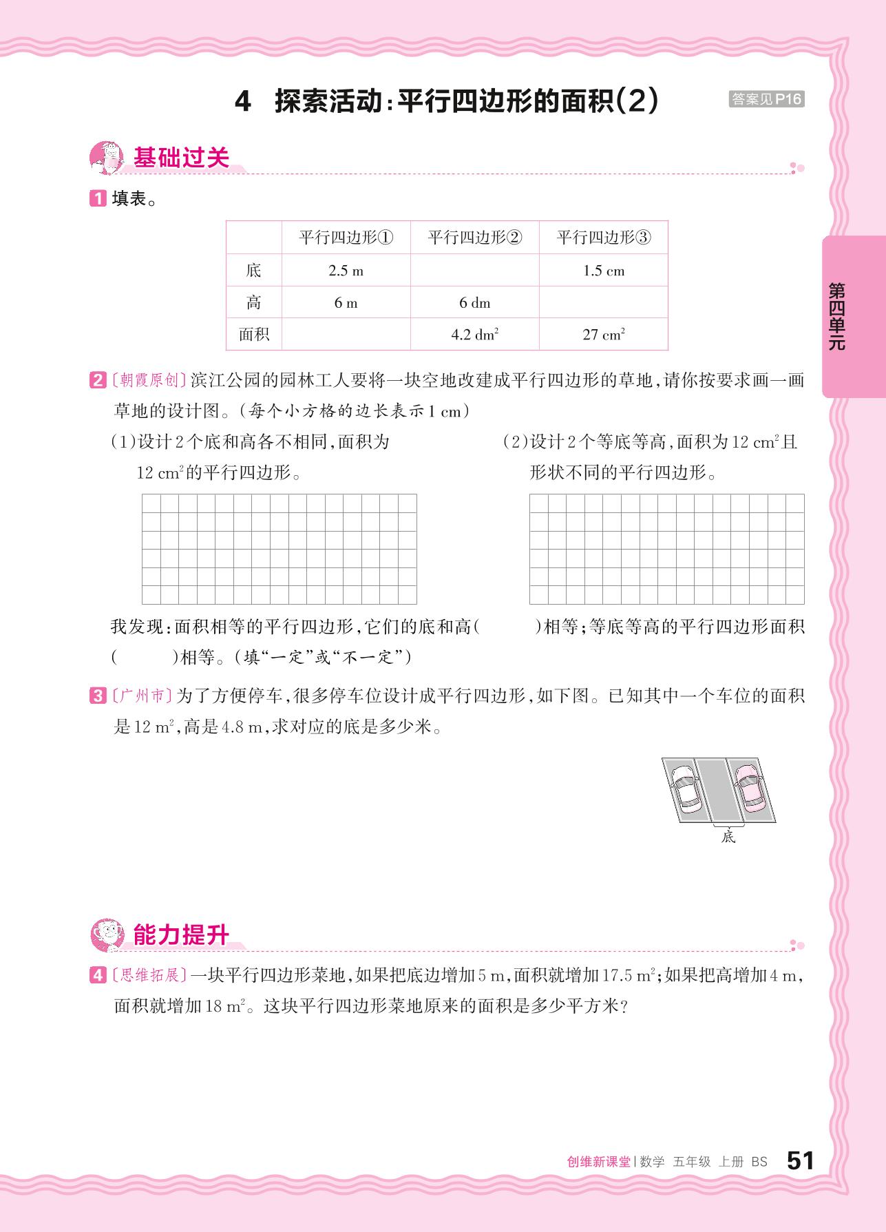 2024秋上册五年级数学北师版 第四单元 多边形的面积——4. 探索活动:平行四边形的面积(2)