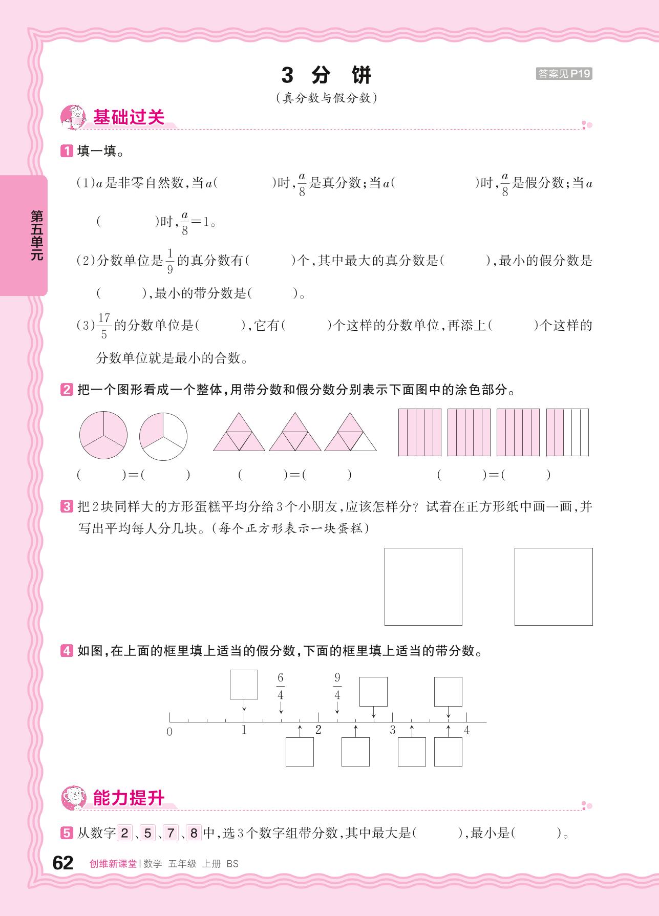 2024秋上册五年级数学北师版 第五单元 分数的意义——3. 分饼