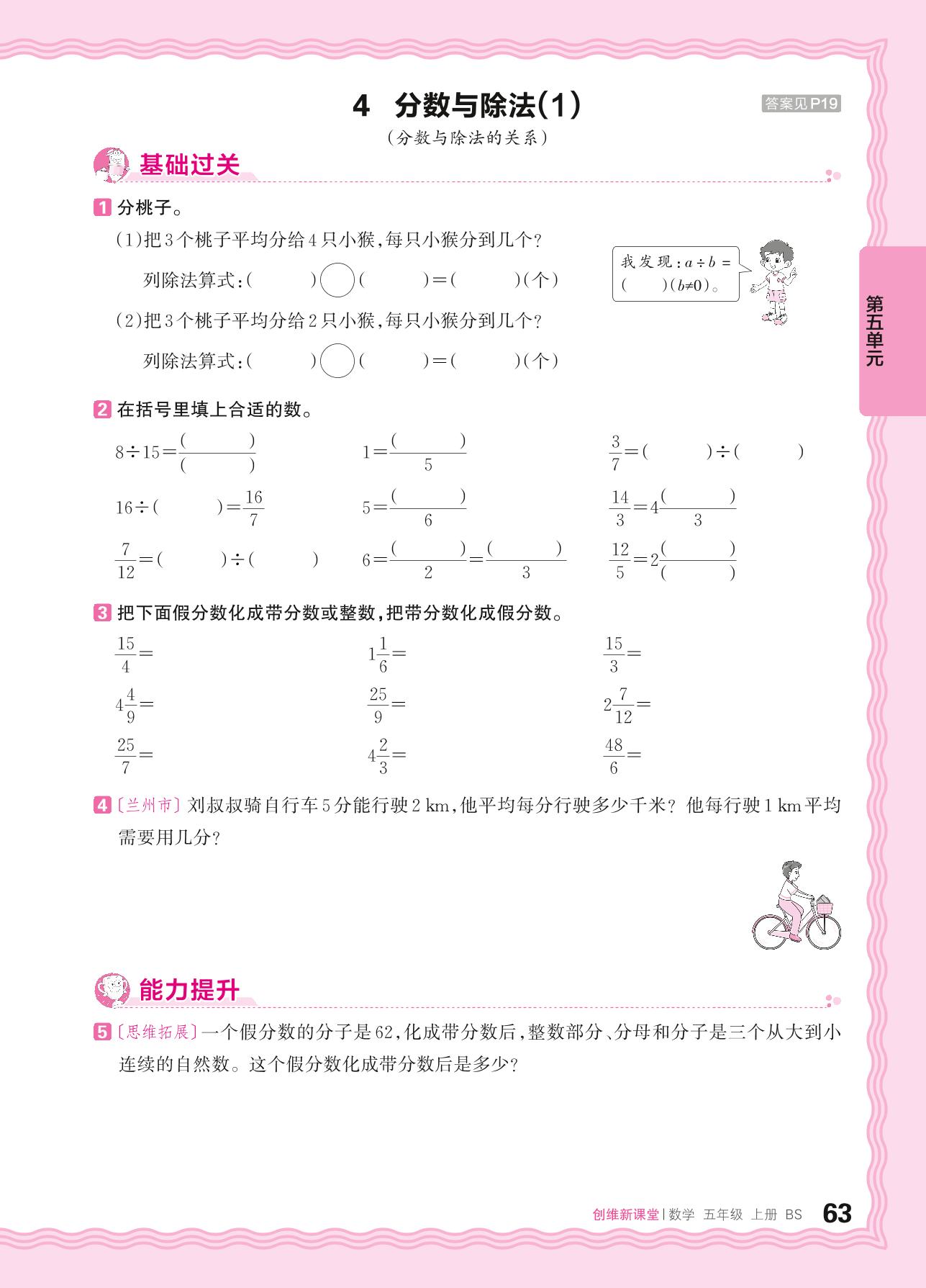 2024秋上册五年级数学北师版 第五单元 分数的意义——4. 分数与除法(1)