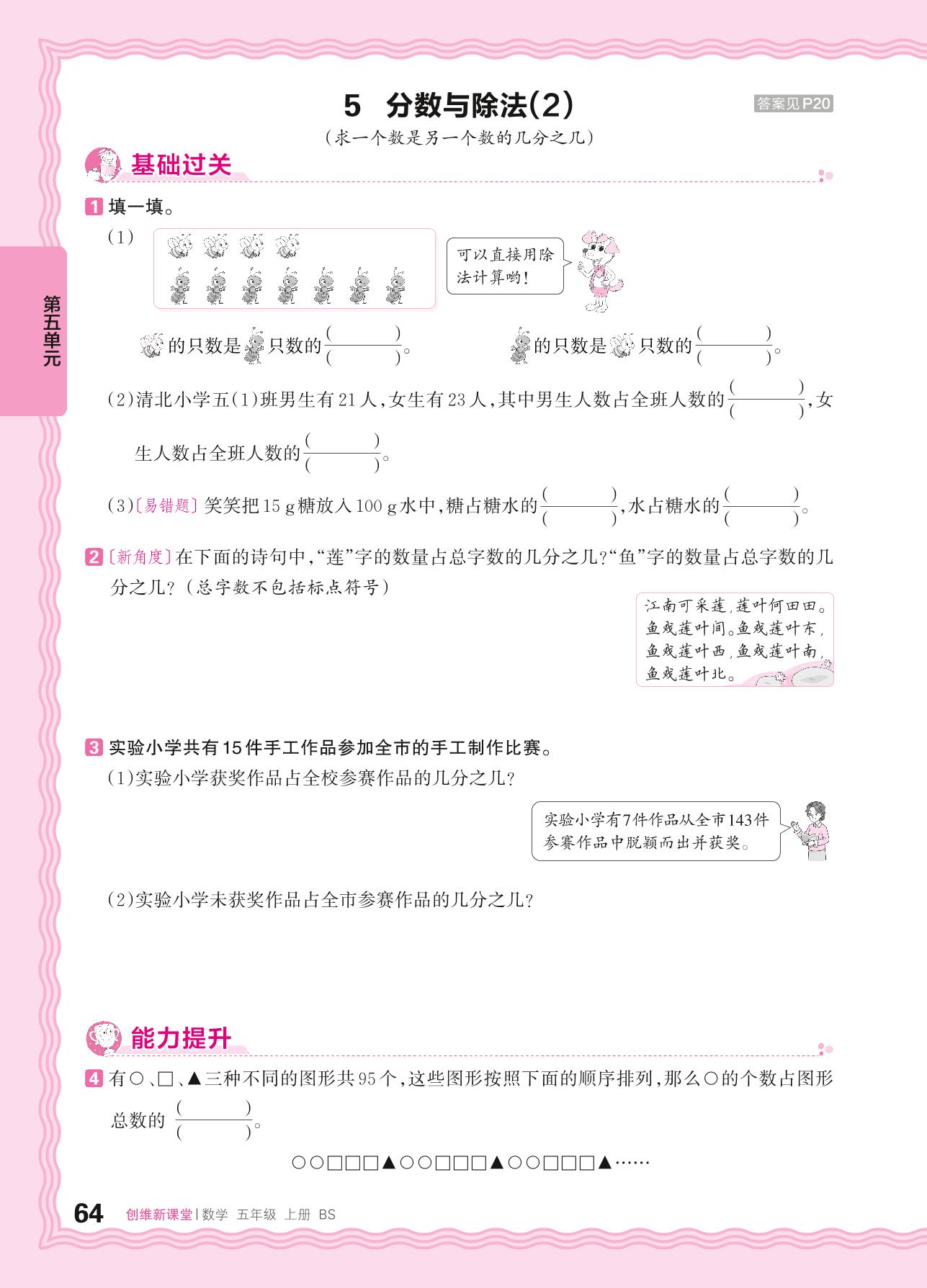 2024秋上册五年级数学北师版 第五单元 分数的意义——5. 分数与除法(2)