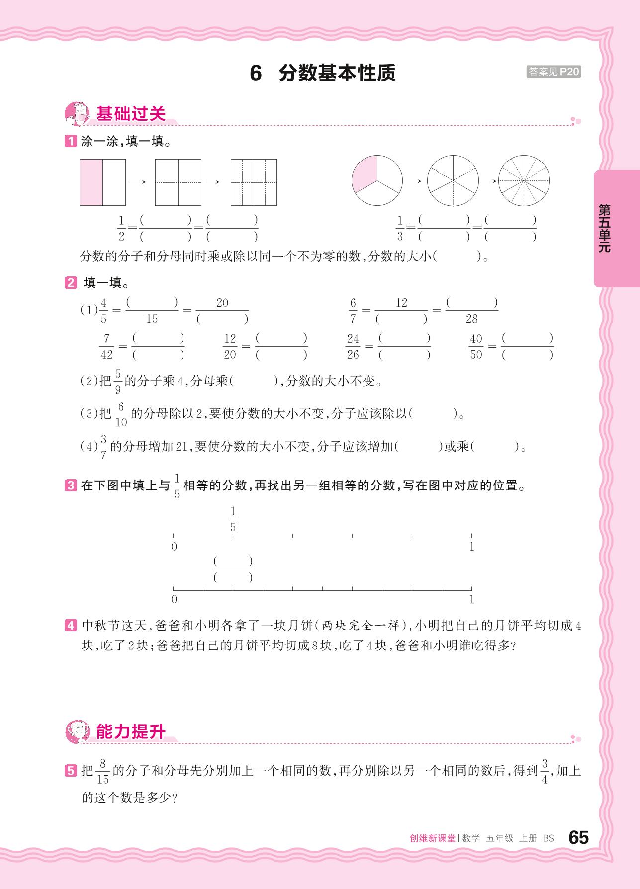 2024秋上册五年级数学北师版 第五单元 分数的意义——6. 分数基本性质