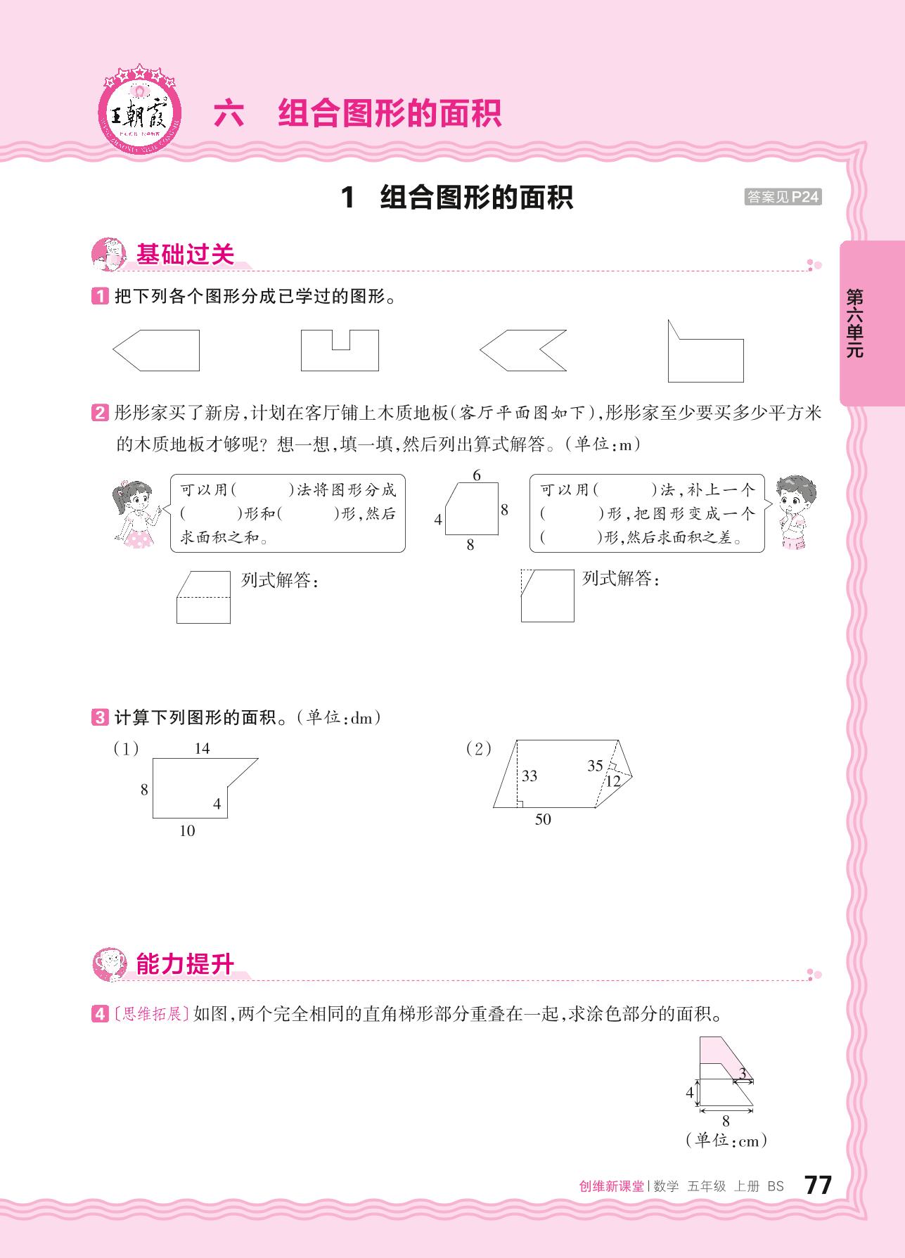 2024秋上册五年级数学北师版 第六单元 组合图形的面积——1. 组合图形的面积