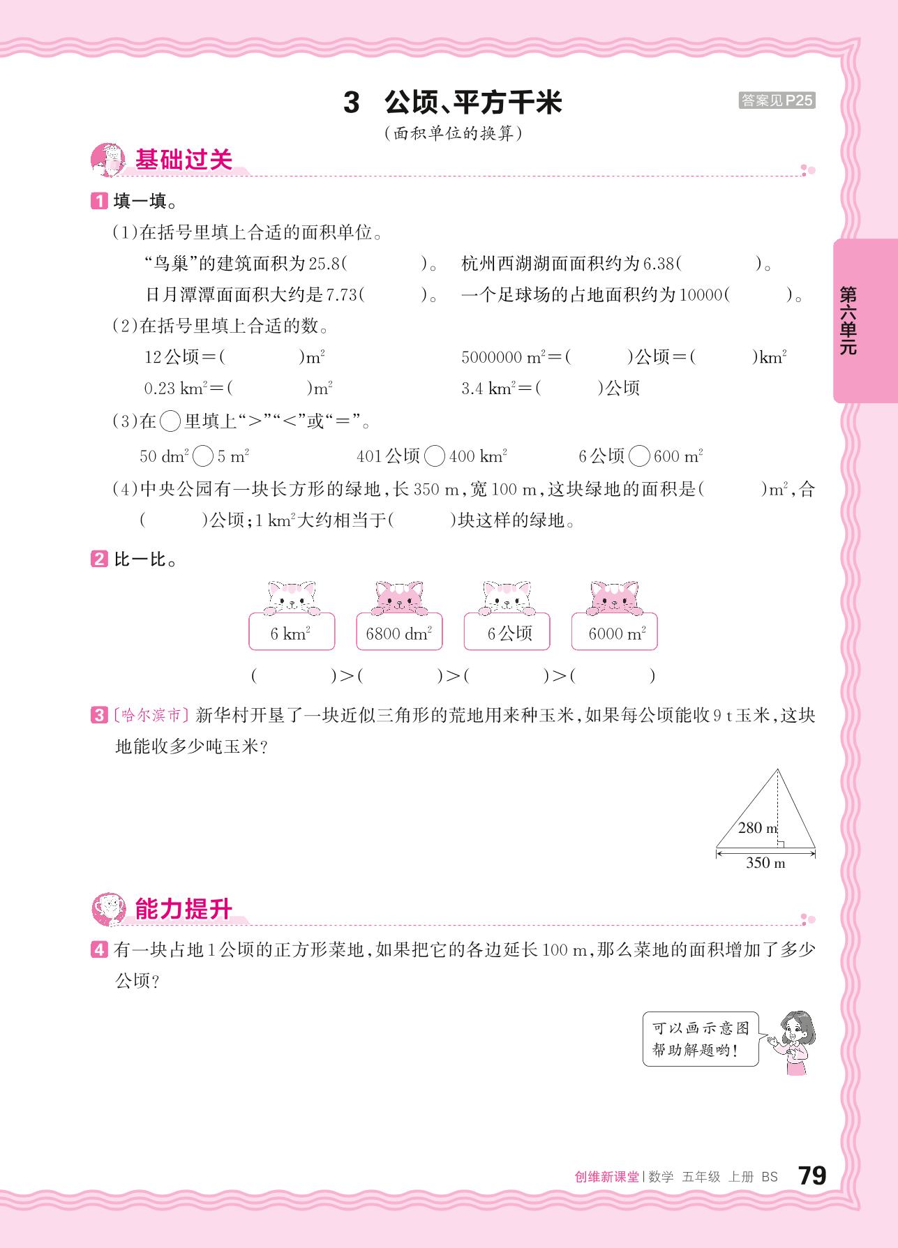 2024秋上册五年级数学北师版 第六单元 组合图形的面积——3. 公顷、平方千米