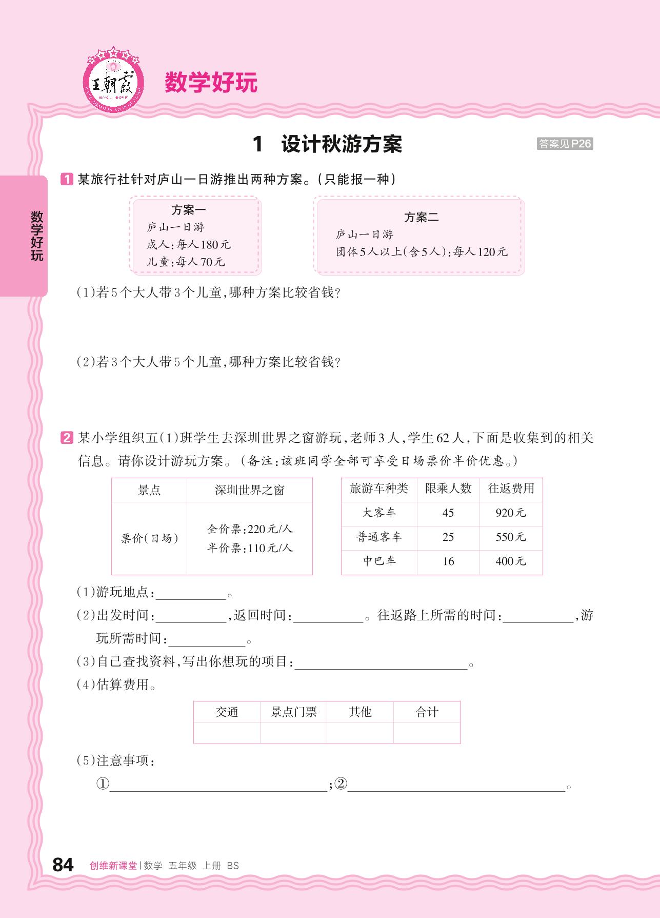 2024秋上册五年级数学北师版 数学好玩——1. 设计秋游方案