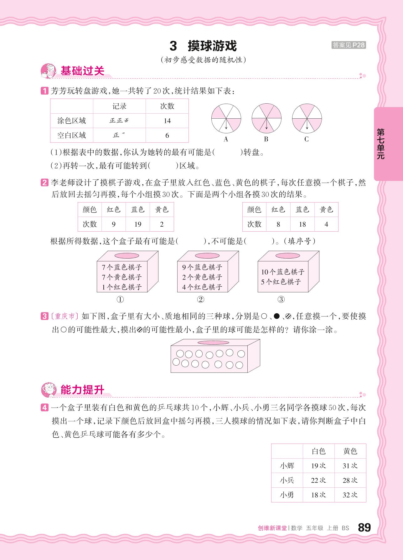 2024秋上册五年级数学北师版 第七单元 可能性——3. 摸球游戏