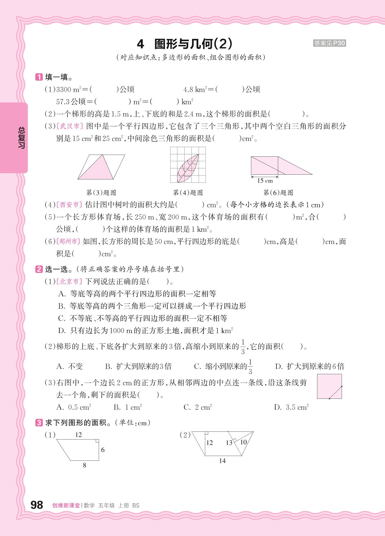 2024秋上册五年级数学北师版 总复习——4. 图形与几何(2)