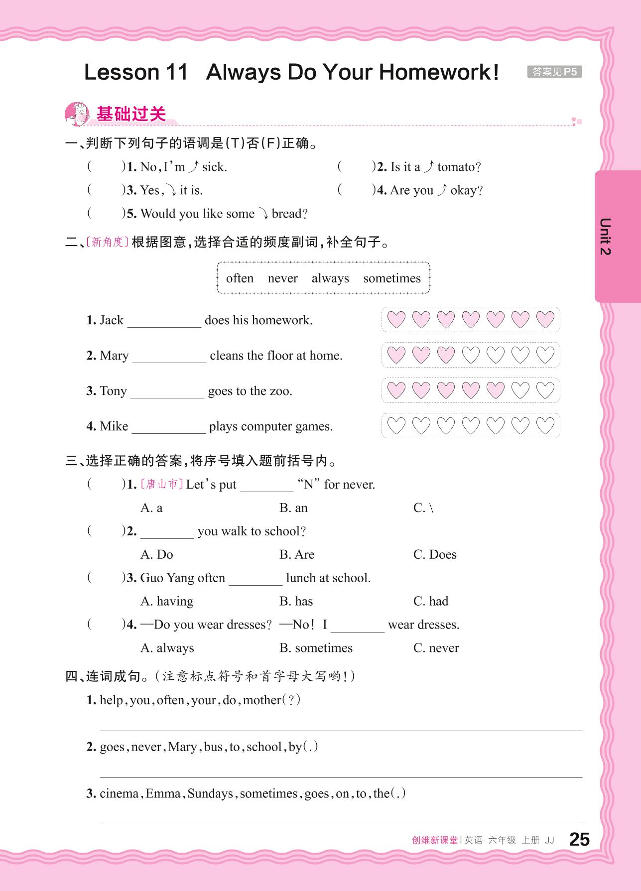 2024秋上册六年级英语冀教版 Unit 2—Lesson 11 Always Do Your Homework!