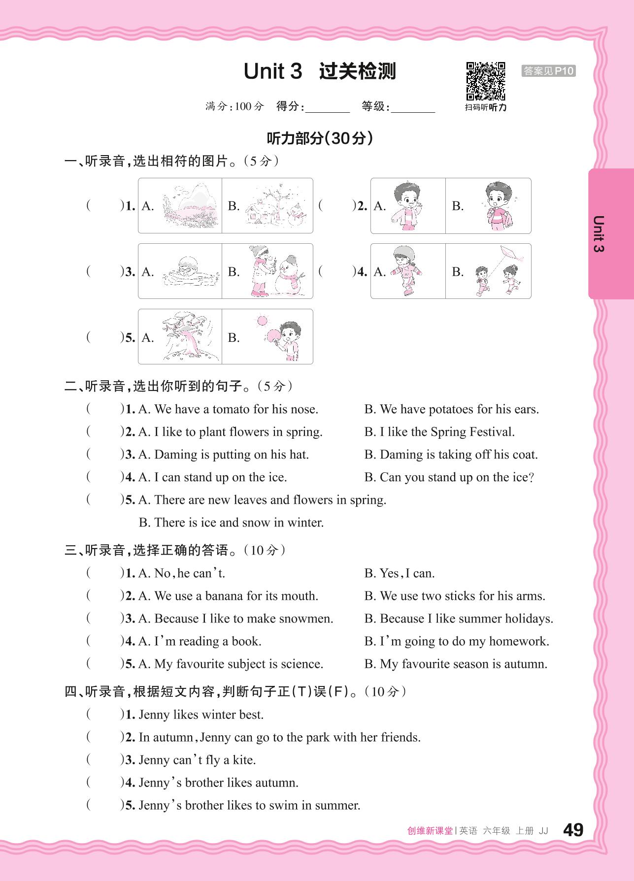 2024秋上册六年级英语冀教版 Unit 3 过关检测