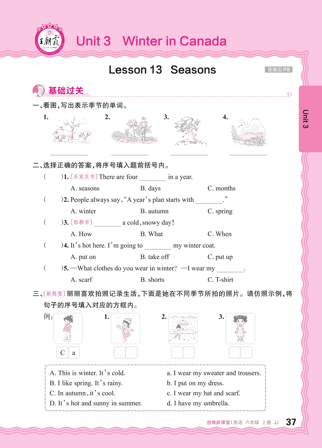 2024秋上册六年级英语冀教版 Unit 3—Lesson 13 Seasons