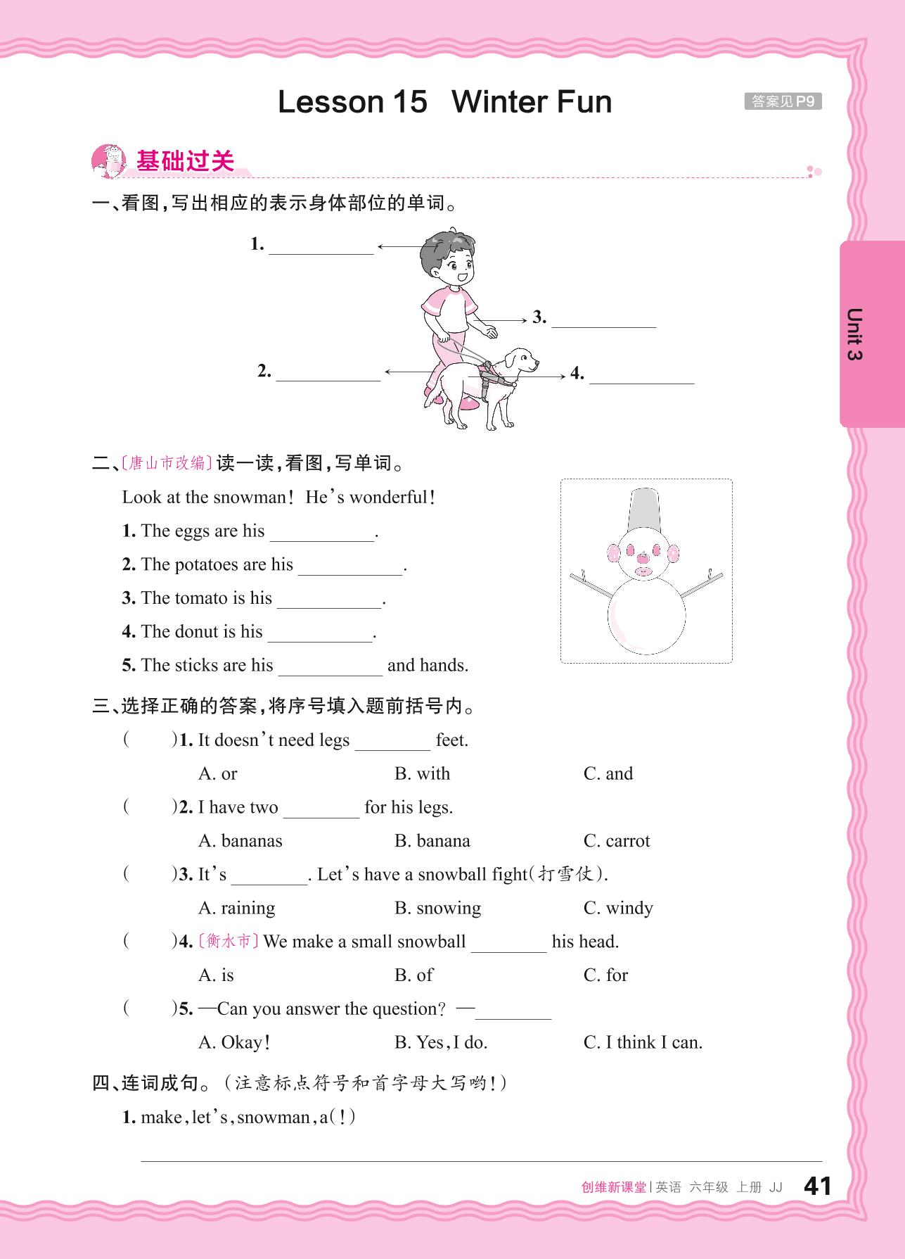 2024秋上册六年级英语冀教版 Unit 3—Lesson 15 Winter Fun