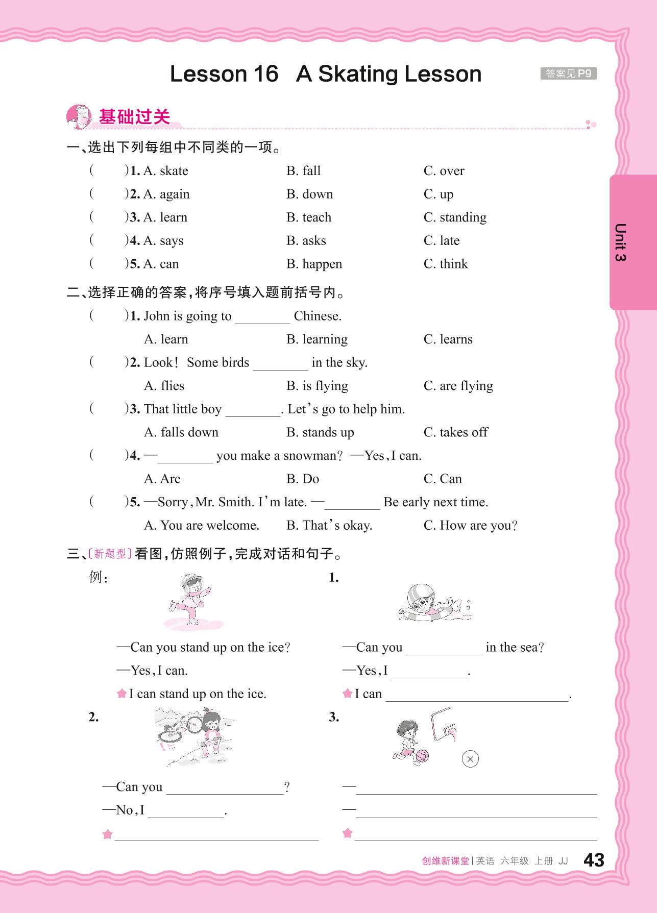 2024秋上册六年级英语冀教版 Unit 3—Lesson 16 A Skating Lesson