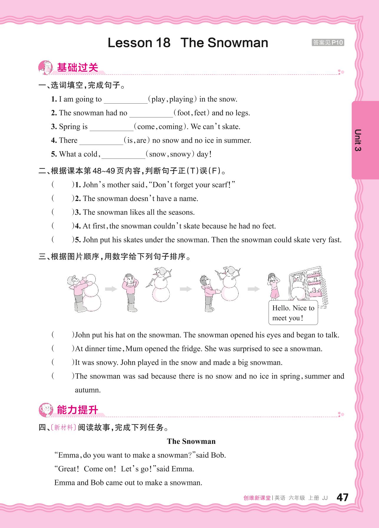 2024秋上册六年级英语冀教版 Unit 3—Lesson 18 The Snowman