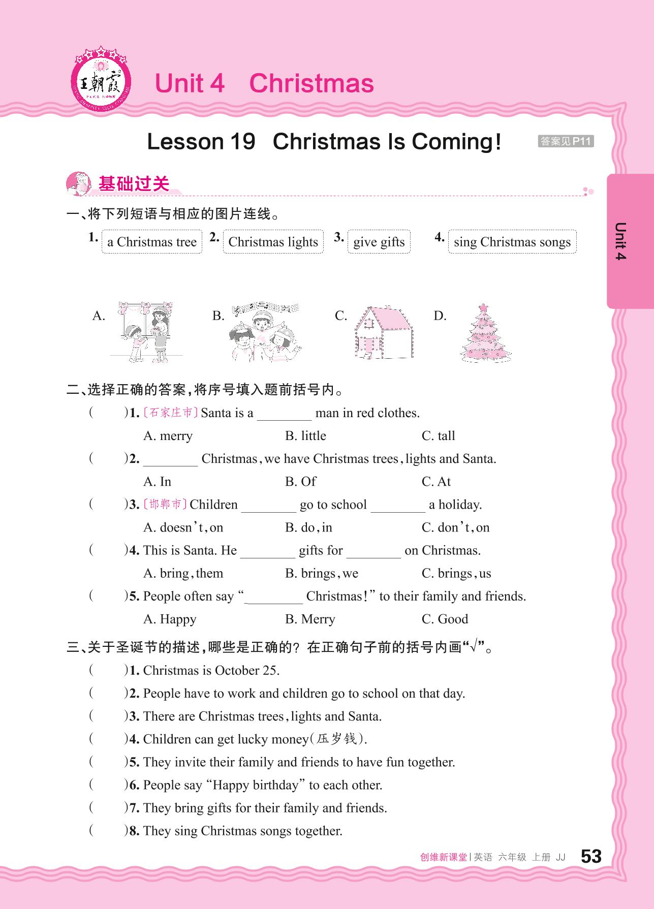 2024秋上册六年级英语冀教版 Unit 4—Lesson 19 Christmas Is Coming!