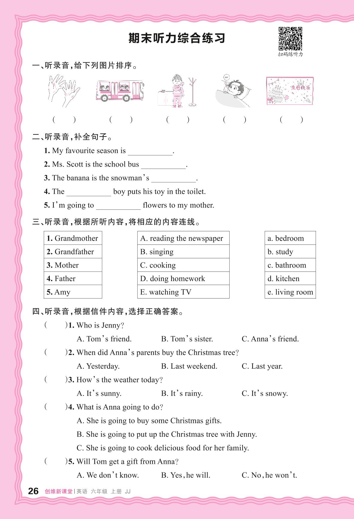 2024秋上册六年级英语冀教版 期末听力综合练习