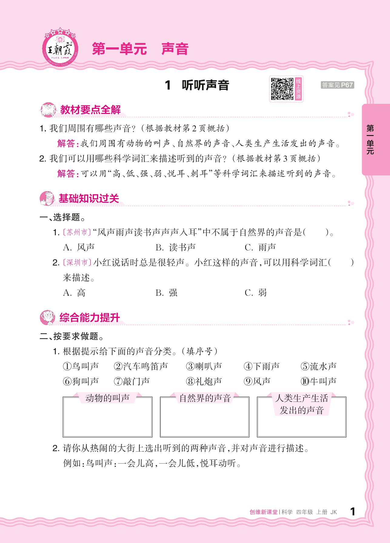 2024秋上册四年级科学教科版 第一单元 声音——1. 听听声音
