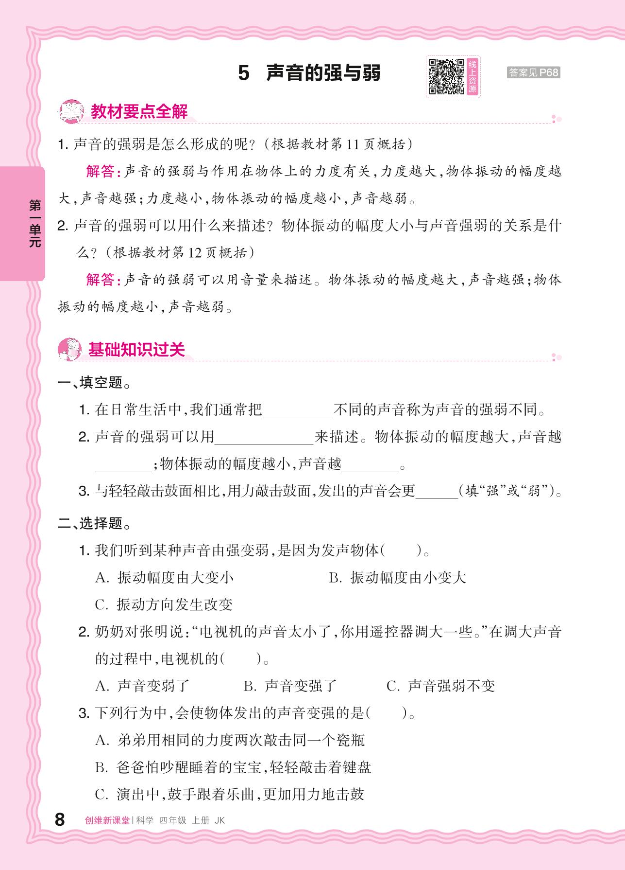 2024秋上册四年级科学教科版 第一单元 声音——5. 声音的强与弱