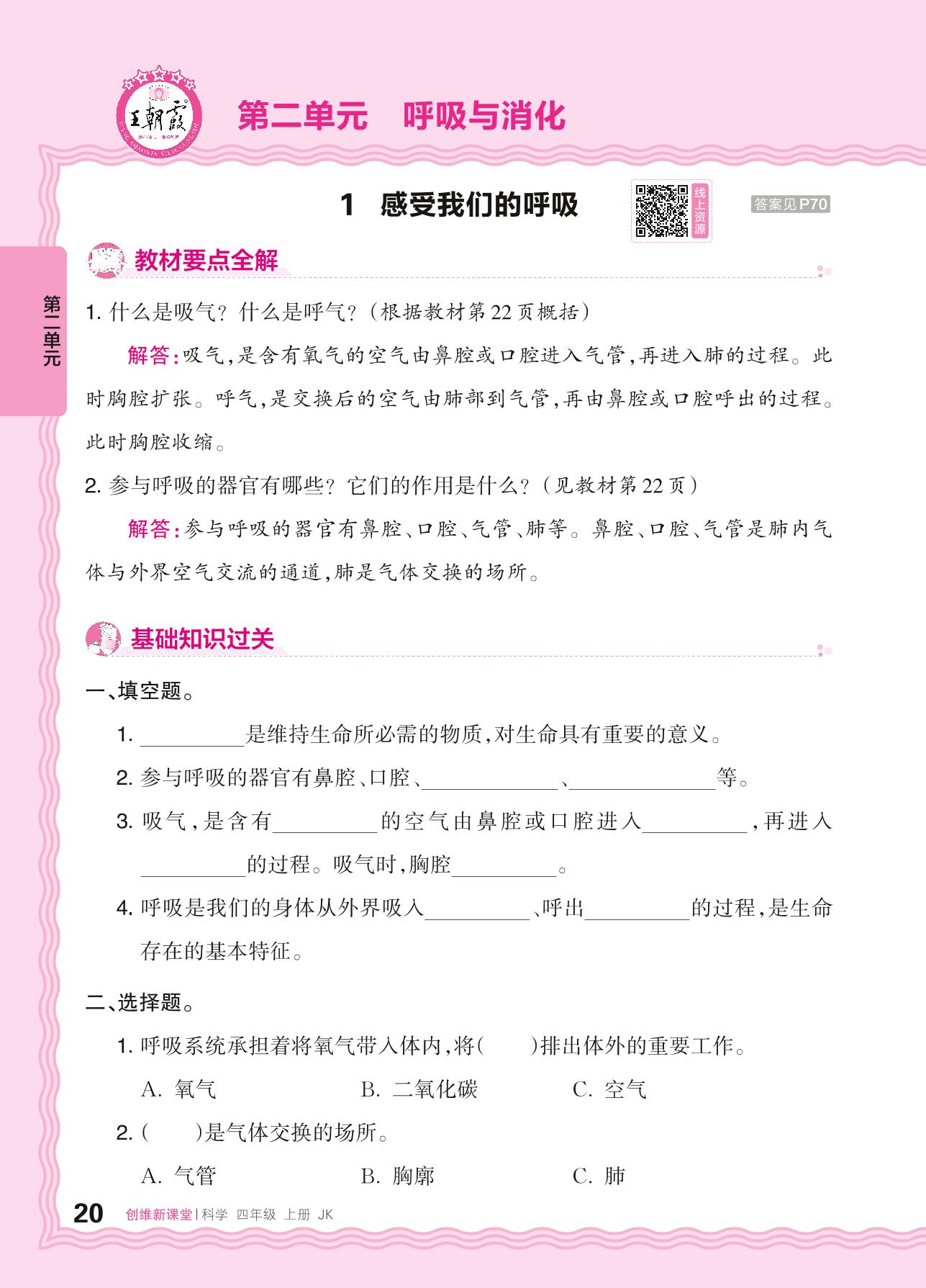 2024秋上册四年级科学教科版 第二单元 呼吸与消化——1. 感受我们的呼吸