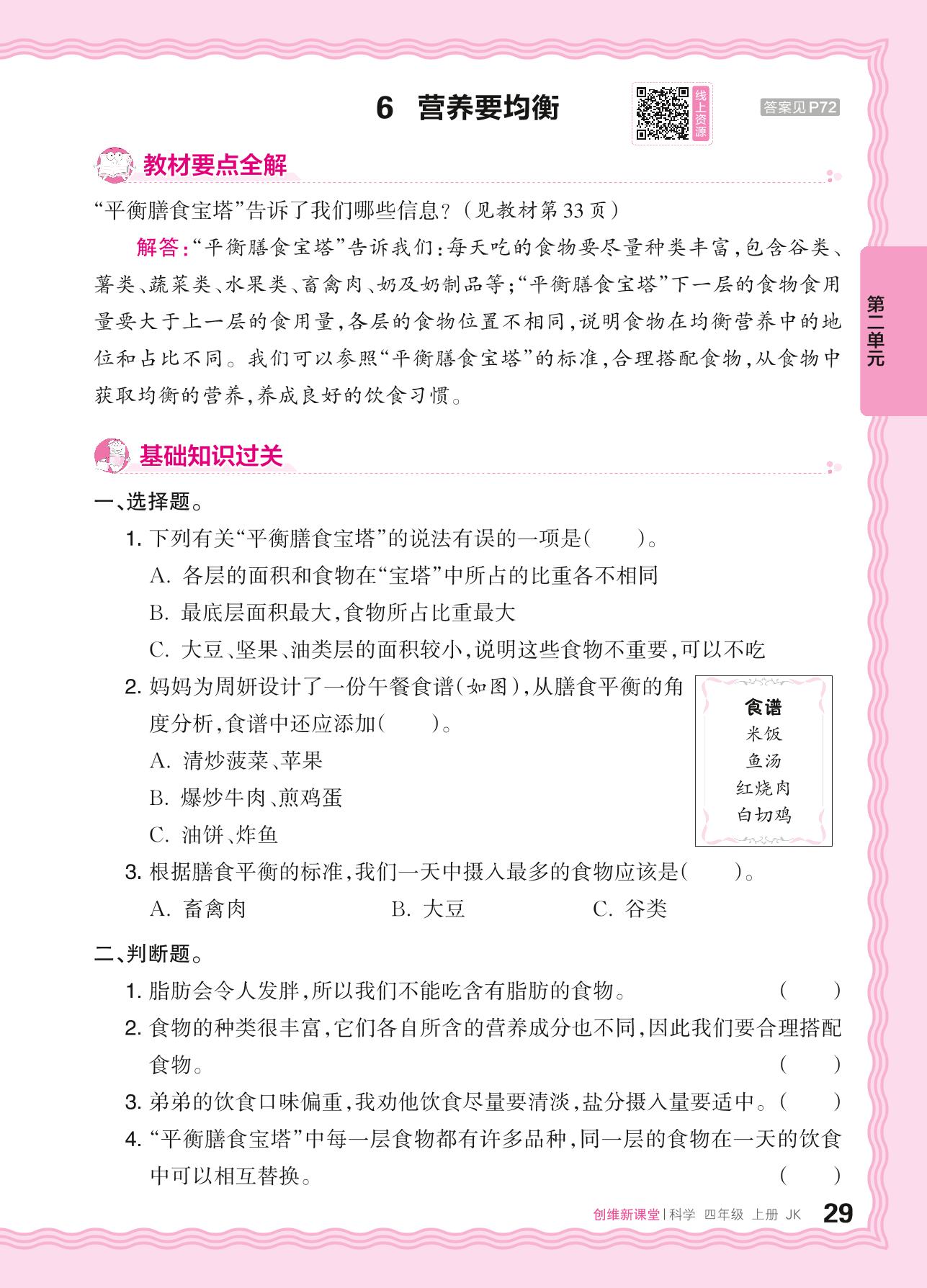 2024秋上册四年级科学教科版 第二单元 呼吸与消化——6. 营养要均衡