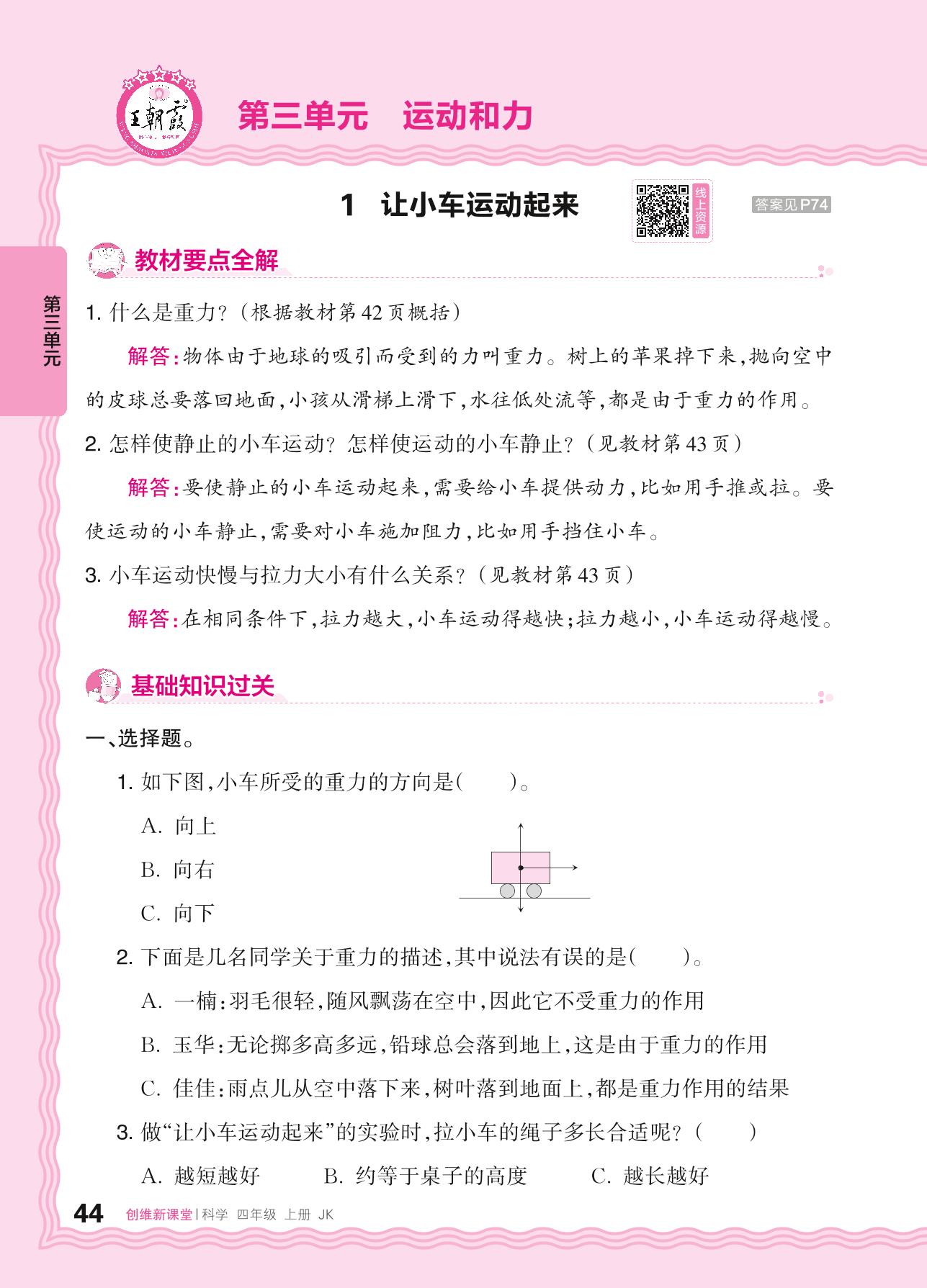 2024秋上册四年级科学教科版 第三单元 运动和力——1. 让小车运动起来