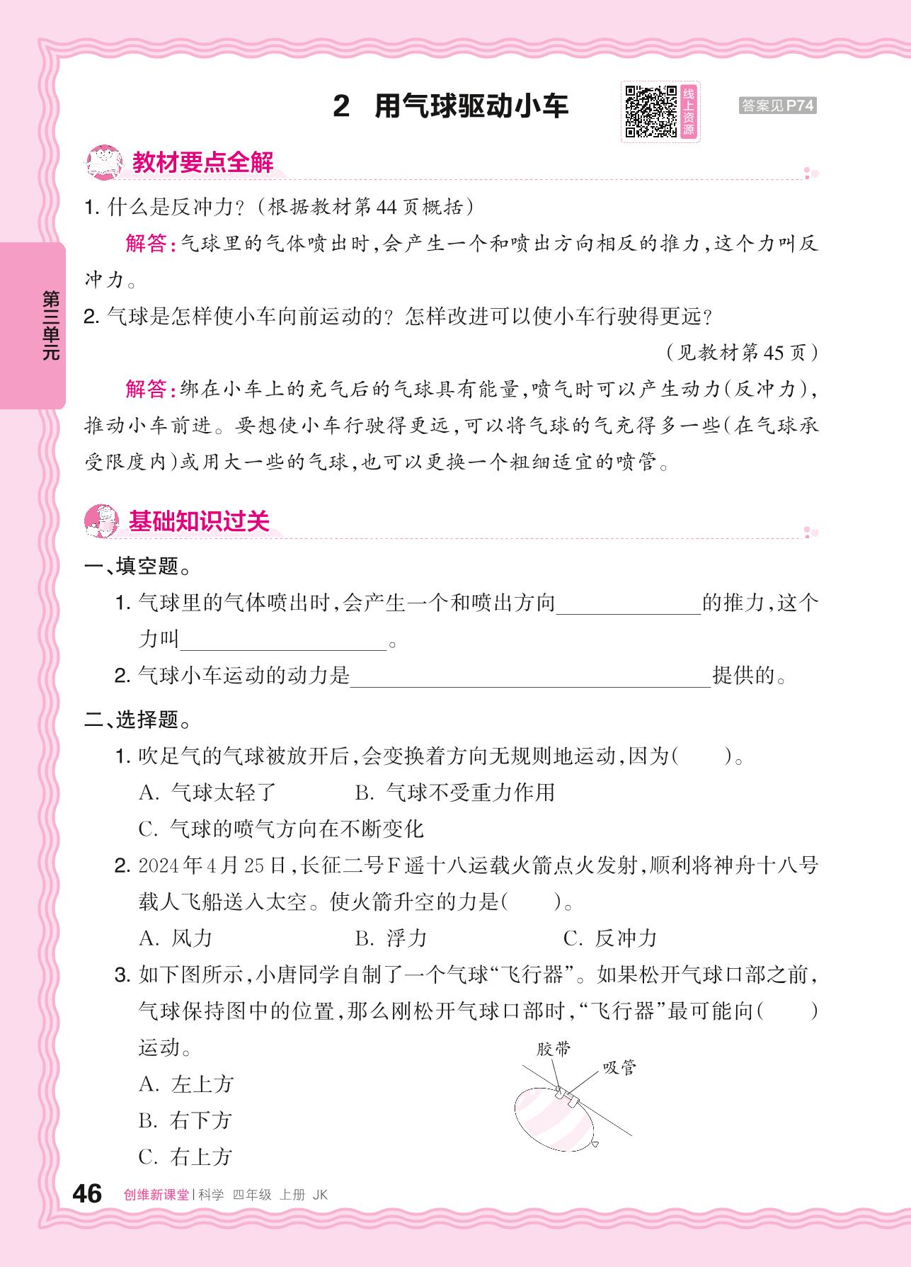 2024秋上册四年级科学教科版 第三单元 运动和力——2. 用气球驱动小车