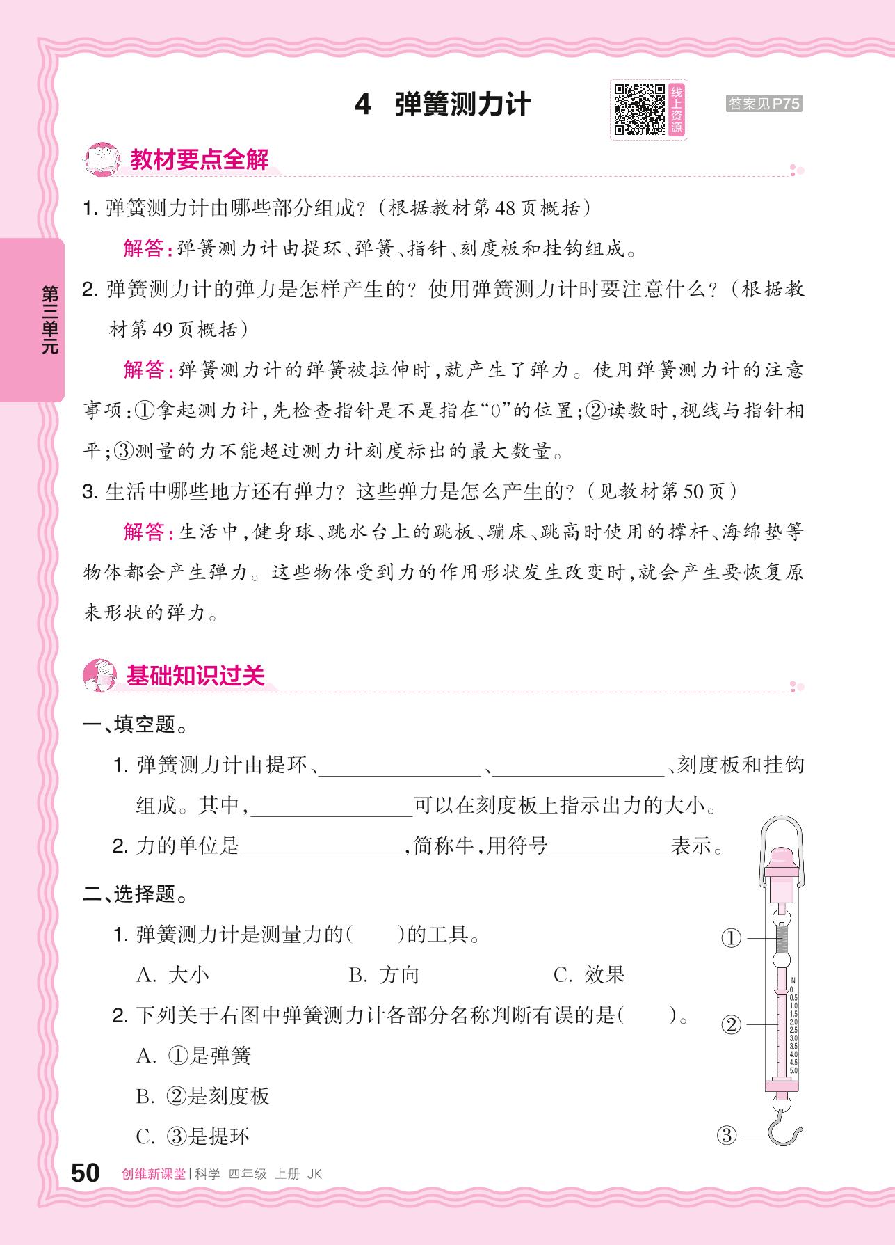 2024秋上册四年级科学教科版 第三单元 运动和力——4. 弹簧测力计