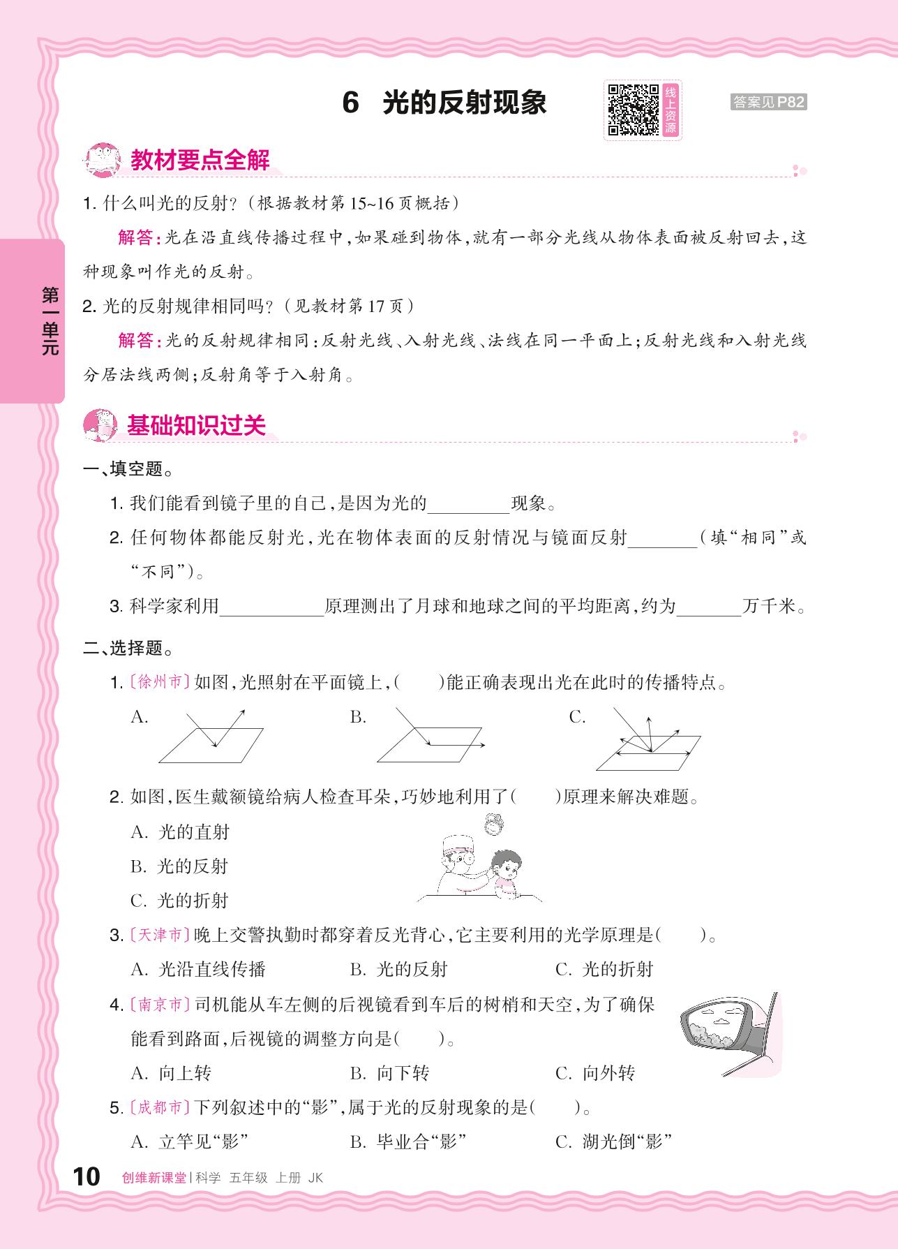 2024秋上册五年级科学教科版 第一单元 光——6. 光的反射现象