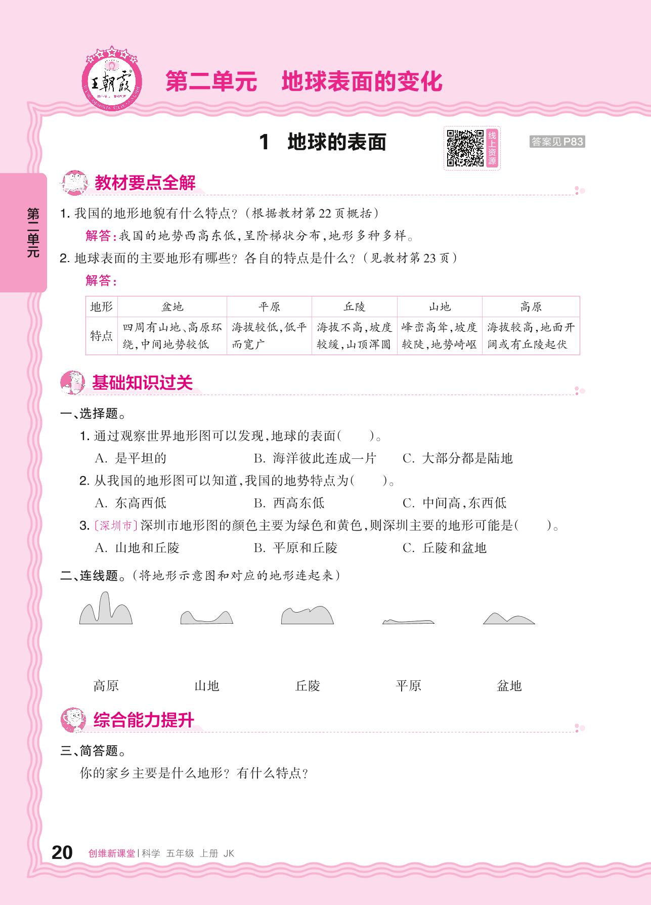2024秋上册五年级科学教科版 第二单元 地球表面的变化——1. 地球的表面