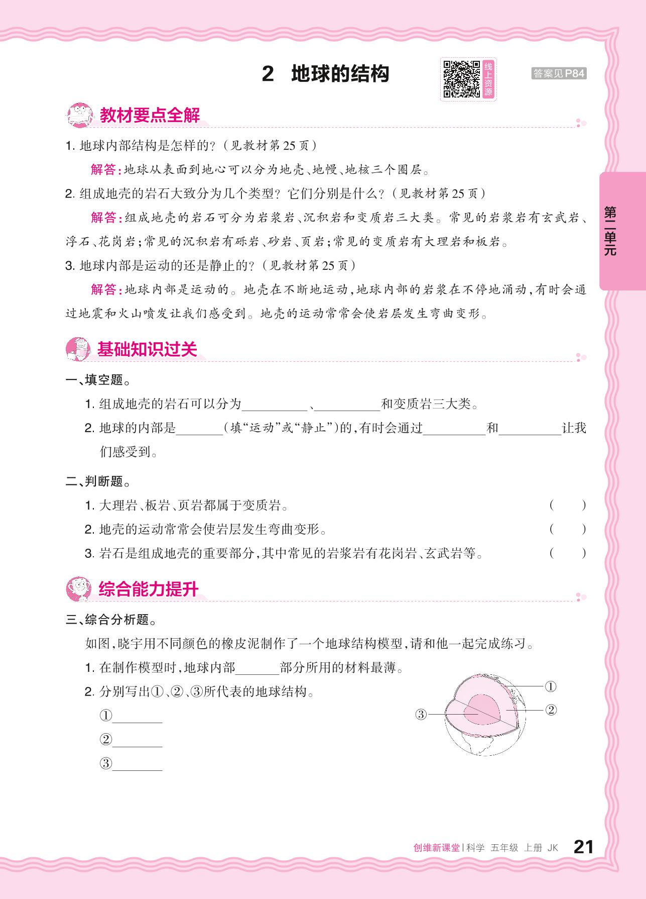 2024秋上册五年级科学教科版 第二单元 地球表面的变化——2. 地球的结构
