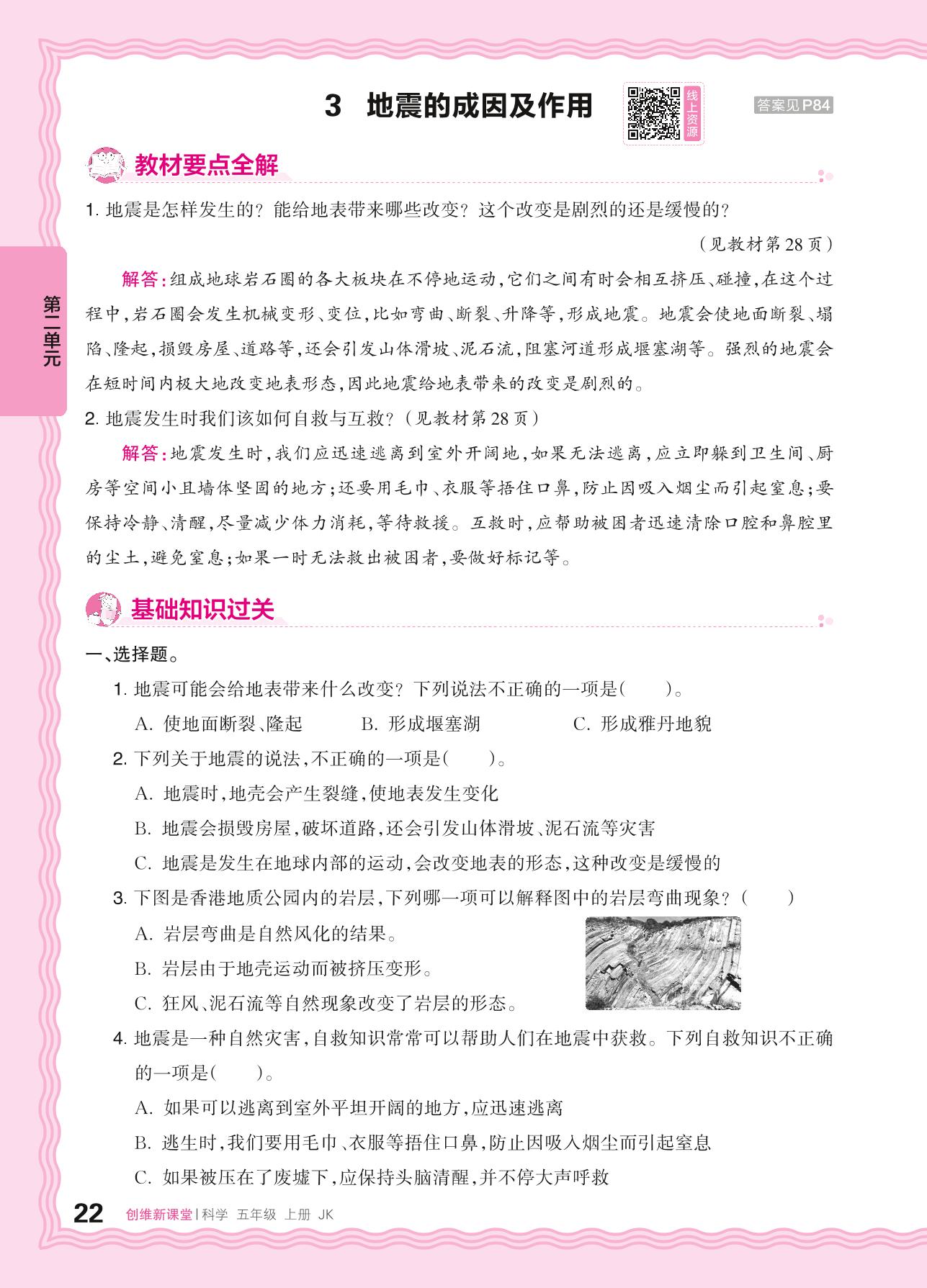 2024秋上册五年级科学教科版 第二单元 地球表面的变化——3. 地震的成因及作用