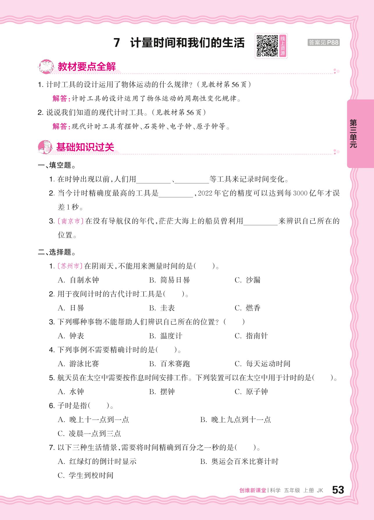 2024秋上册五年级科学教科版 第三单元 计量时间——7. 计量时间和我们的生活