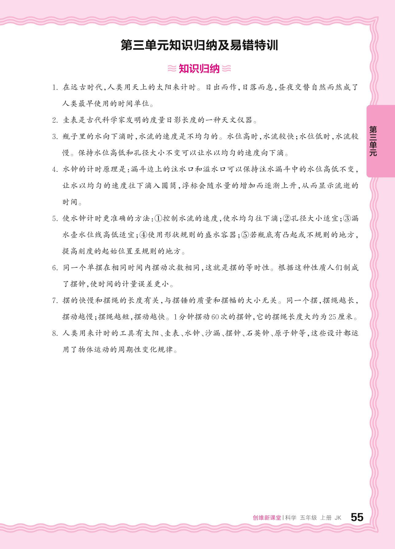 2024秋上册五年级科学教科版 第三单元知识归纳及易错特训
