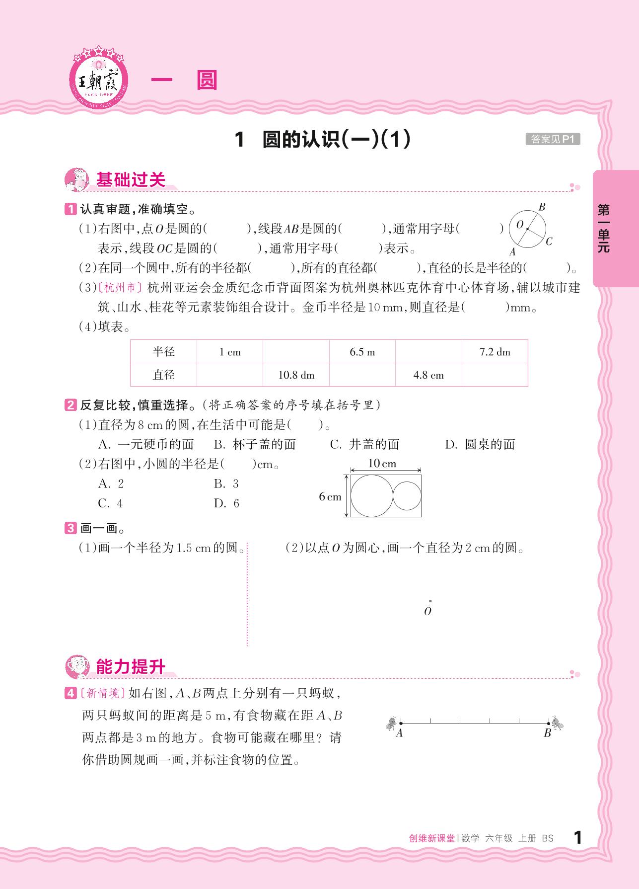 2024秋上册六年级数学北师版 第一单元 圆——1. 圆的认识(一)(1)