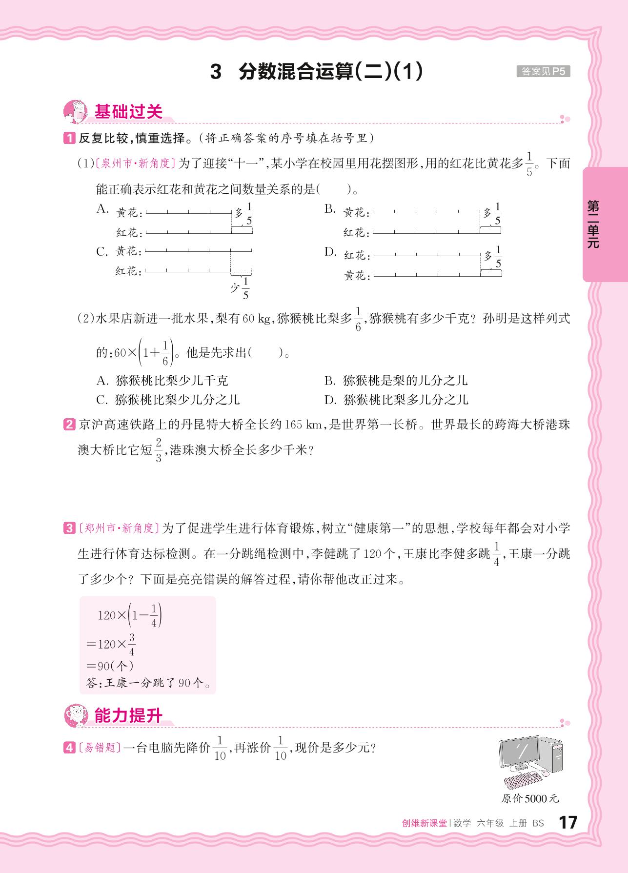 2024秋上册六年级数学北师版 第二单元 分数混合运算——3. 分数混合运算(二)(1)