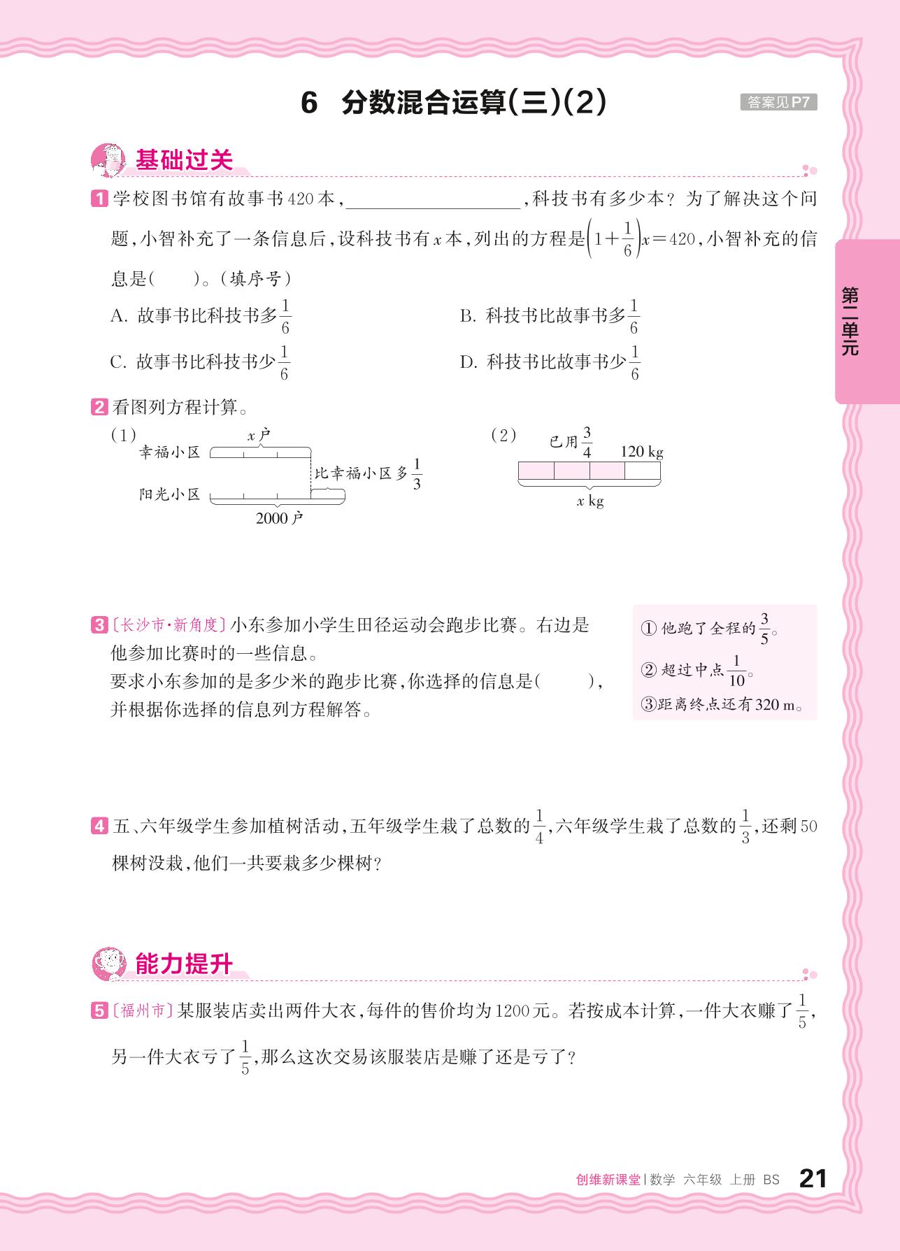 2024秋上册六年级数学北师版 第二单元 分数混合运算——6. 分数混合运算(三)(2)